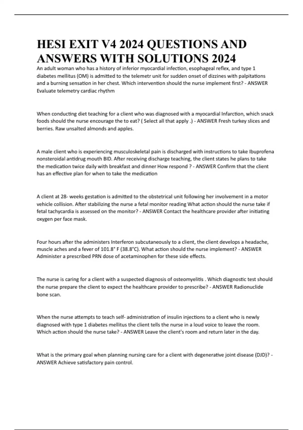HESI EXIT V4 2024 QUESTIONS AND ANSWERS WITH SOLUTIONS 2024