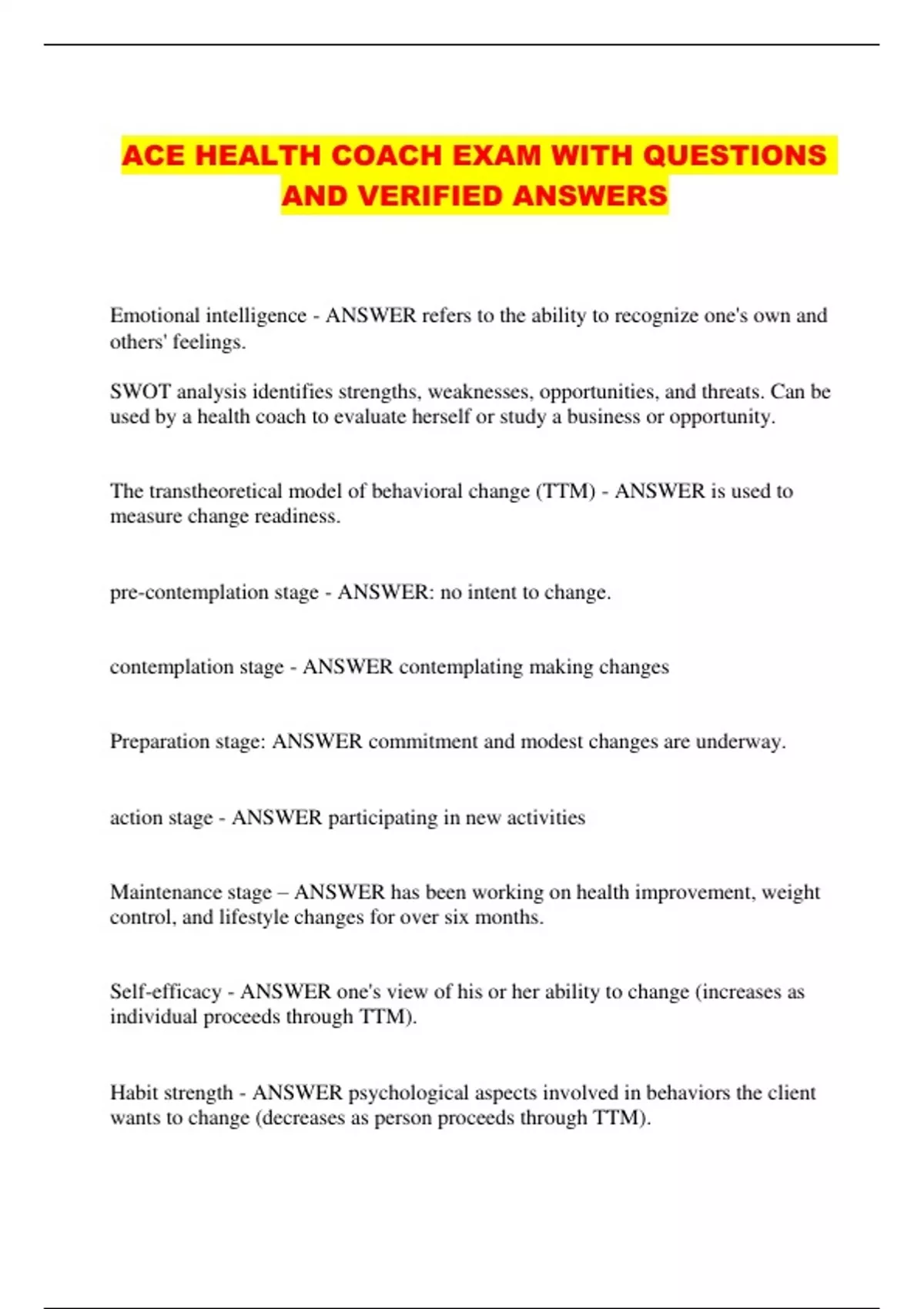 ACE HEALTH COACH EXAM WITH QUESTIONS AND VERIFIED ANSWERS...
