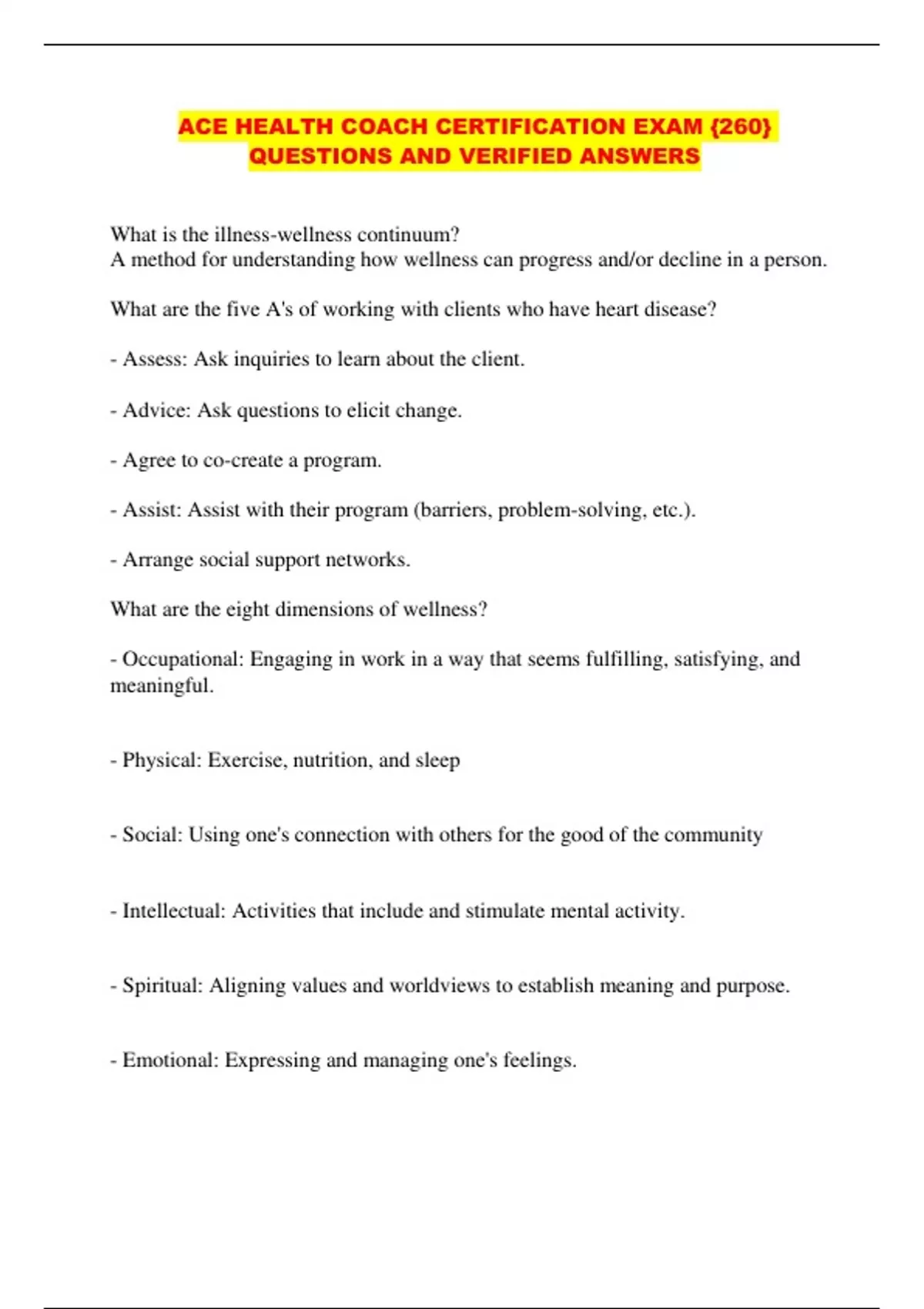 ACE HEALTH COACH CERTIFICATION EXAM {260} QUESTIONS AND VERIFIED ANSWERS...