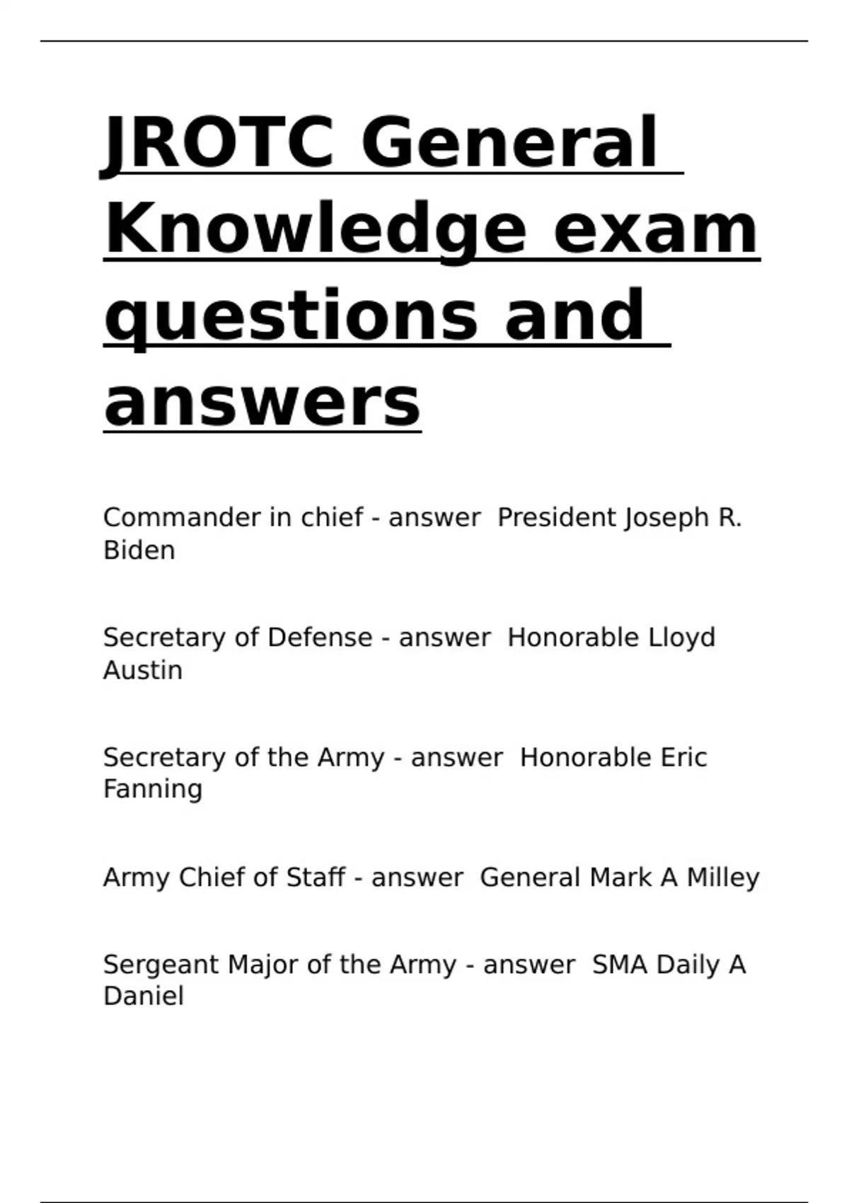 Sergeant Major of the Army - answer SMA Daily A