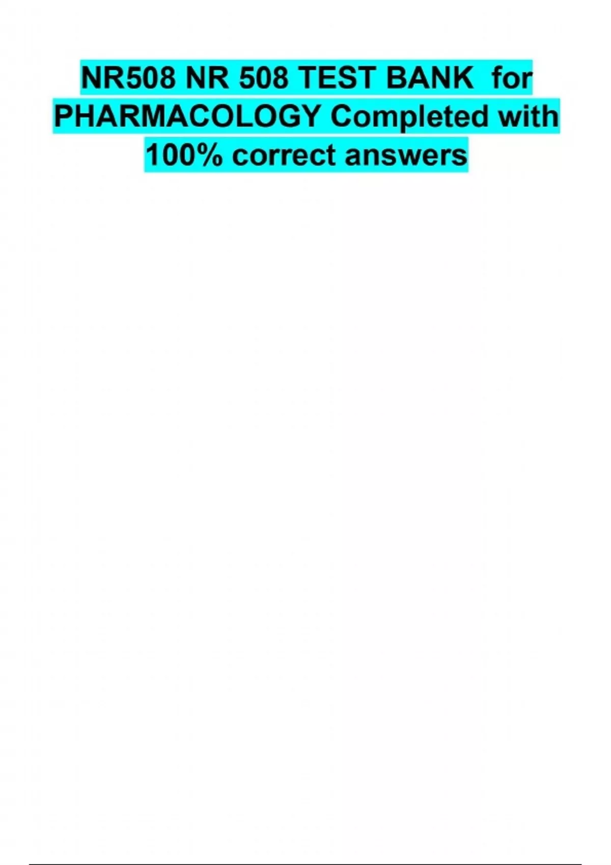 NR508 NR 508 TEST BANK for PHARMACOLOGY COMPLETED WITH CORRECT ANSWERS