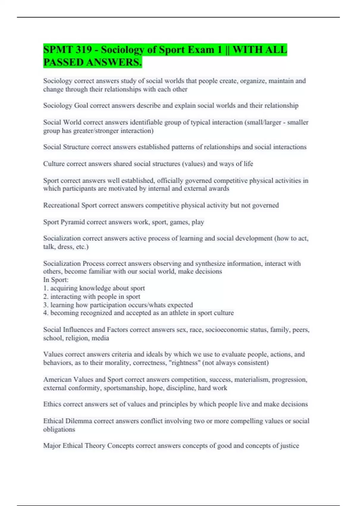 SPMT 319 - Sociology of Sport Exam 1 || WITH ALL PASSED ANSWERS.
