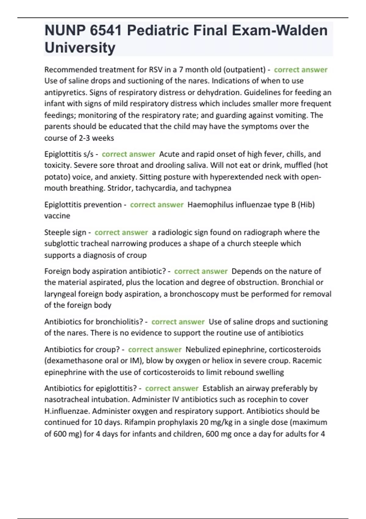, NUNP 6541 Pediatric Final Exam-Walden