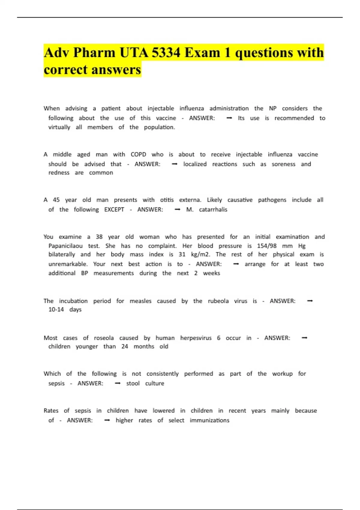 Adv Pharm UTA 5334 Exam 1 questions with correct answers