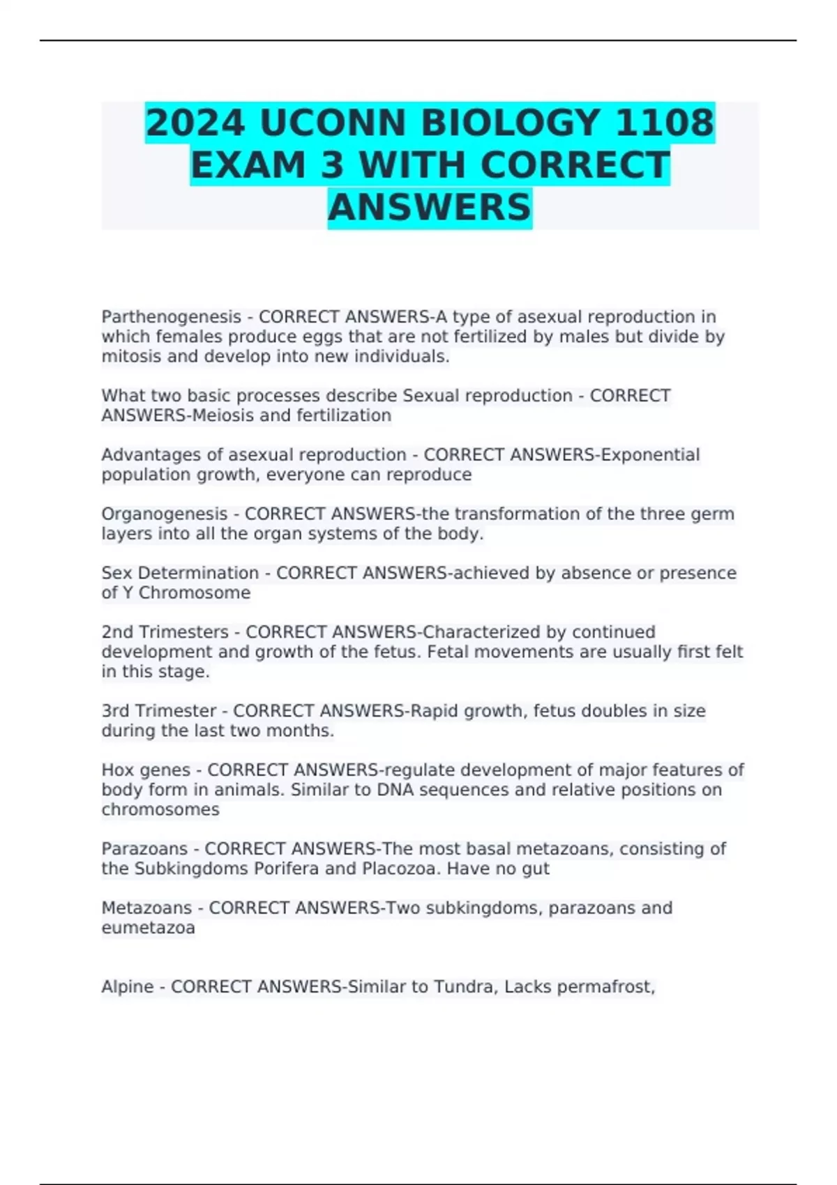 2024 UCONN BIOLOGY 1108 EXAM 3 WITH CORRECT ANSWERS