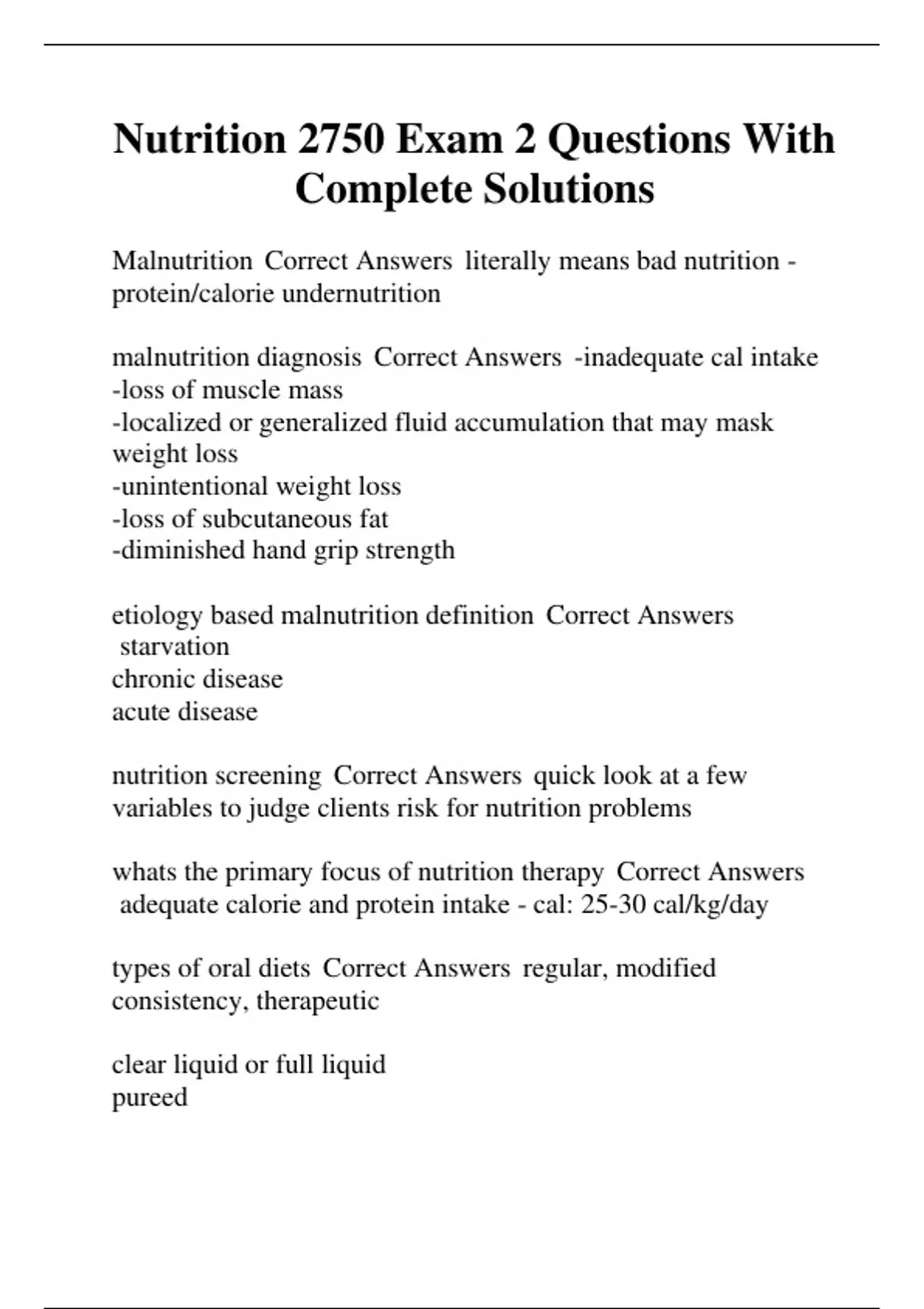 full liquid diet Correct Answers liquid at room temp; more