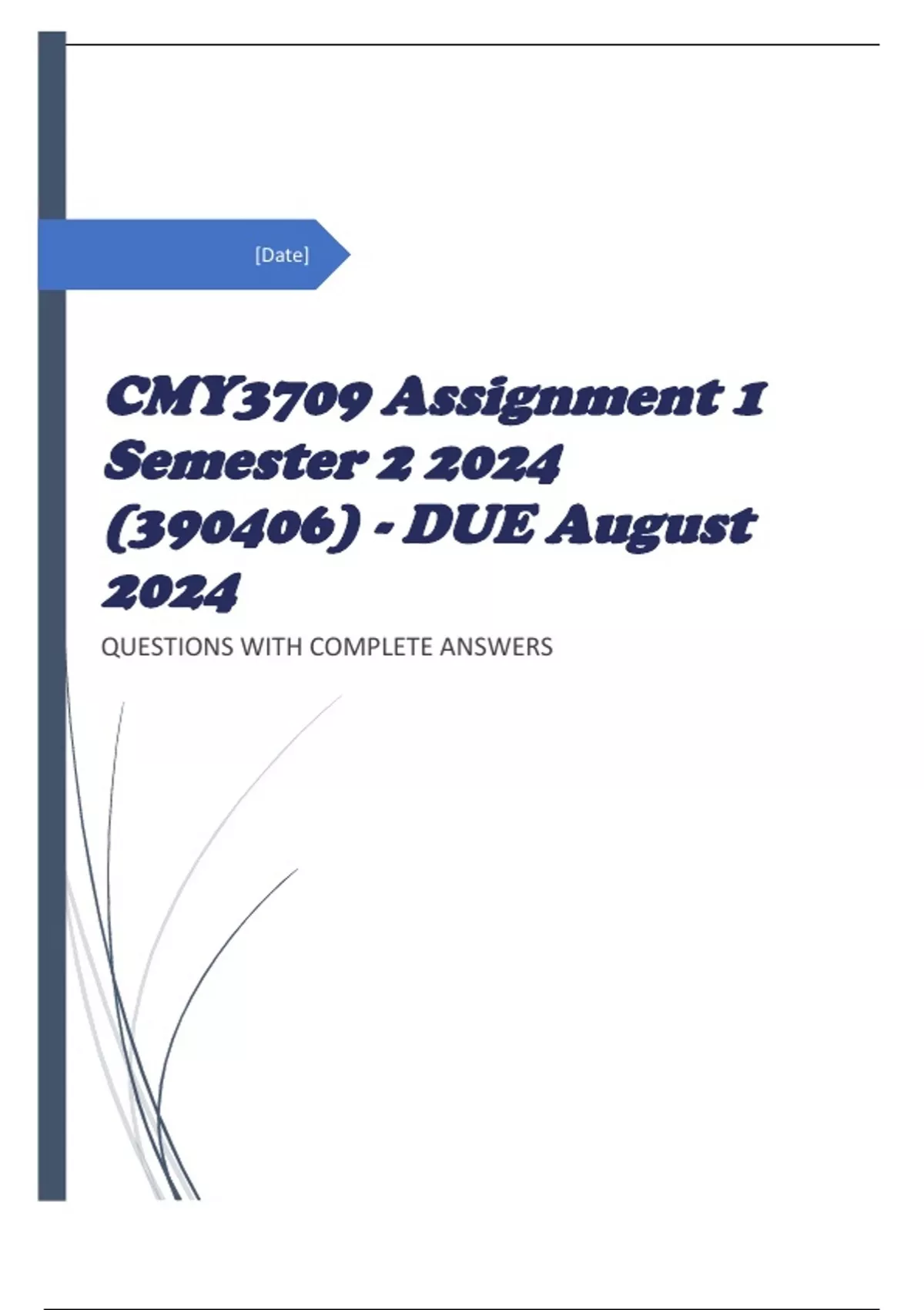 , CMY3709 Assignment 1 Semester 2 2024 (390406) - DUE August 2024
