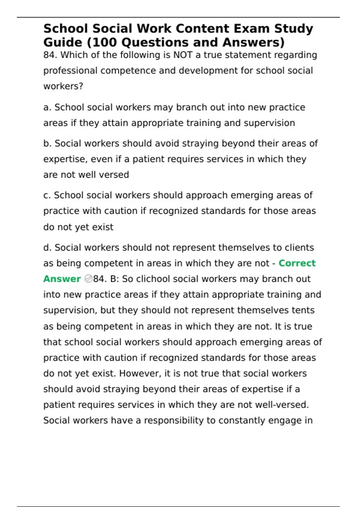 Answer ✅84. B: So clichool social workers may branch out