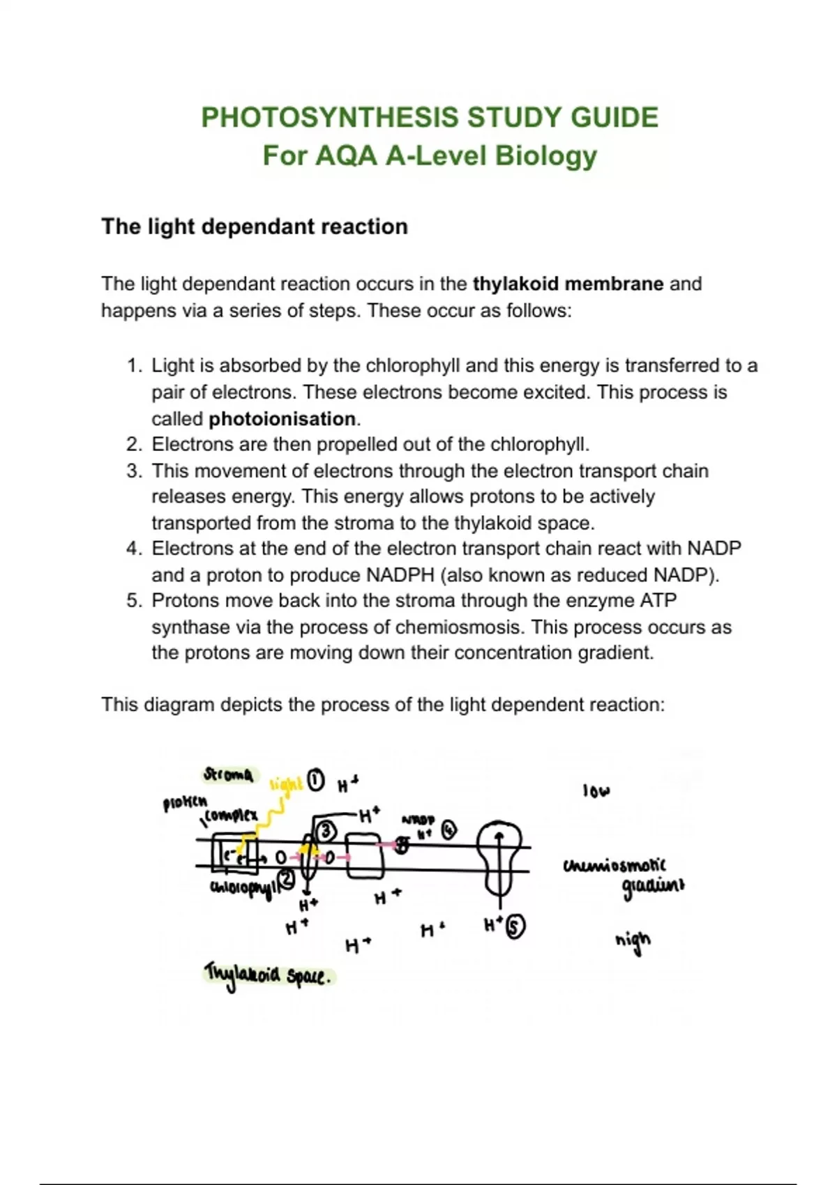 The light dependant reaction