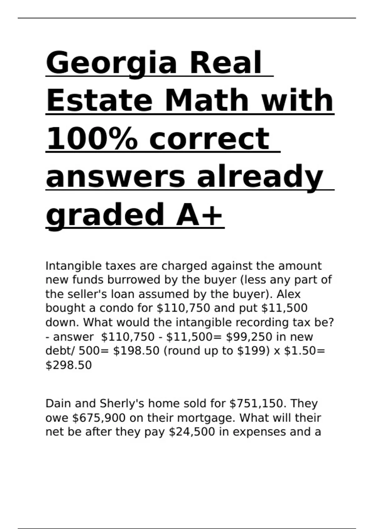 assumed by the buyer) A home sold for $375,900.