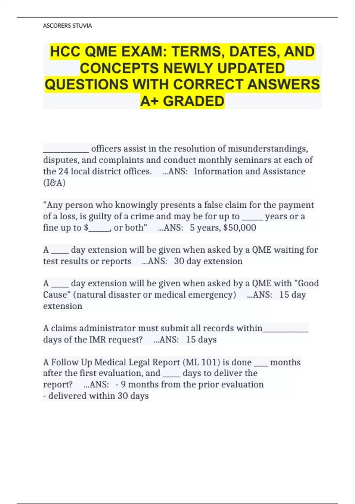 HCC QME EXAM: TERMS, DATES, AND