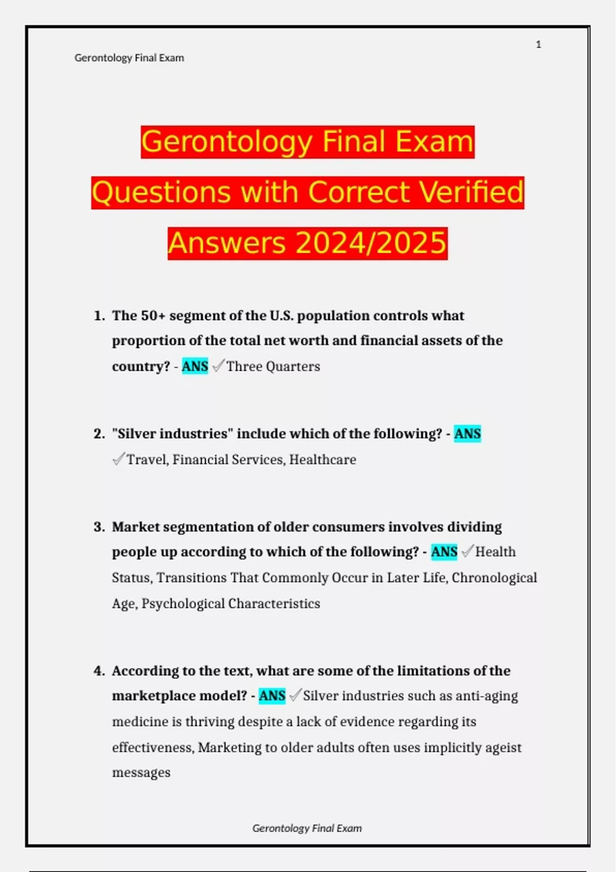 Gerontology Final Exam