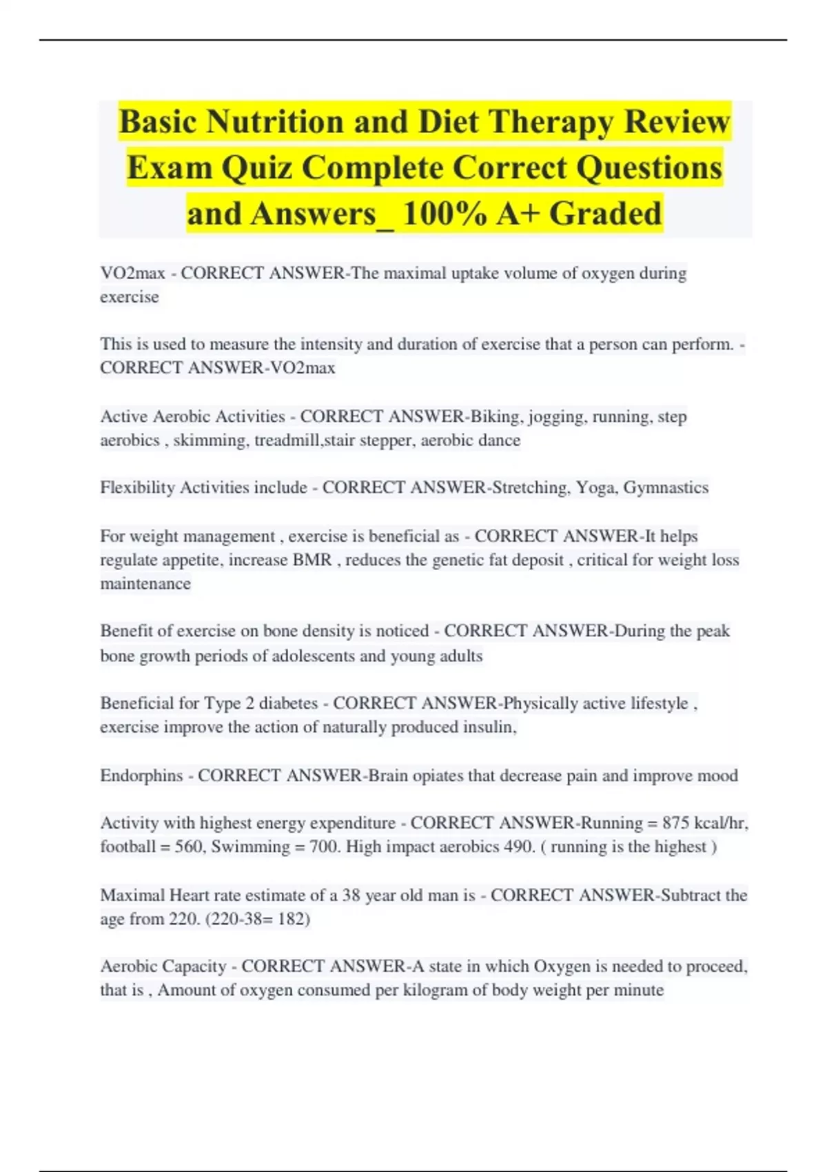 Exam Quiz Complete Correct Questions