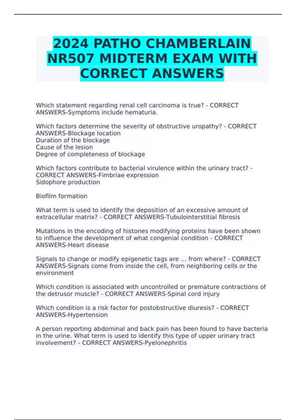 involvement? - CORRECT ANSWERS-Pyelonephritis