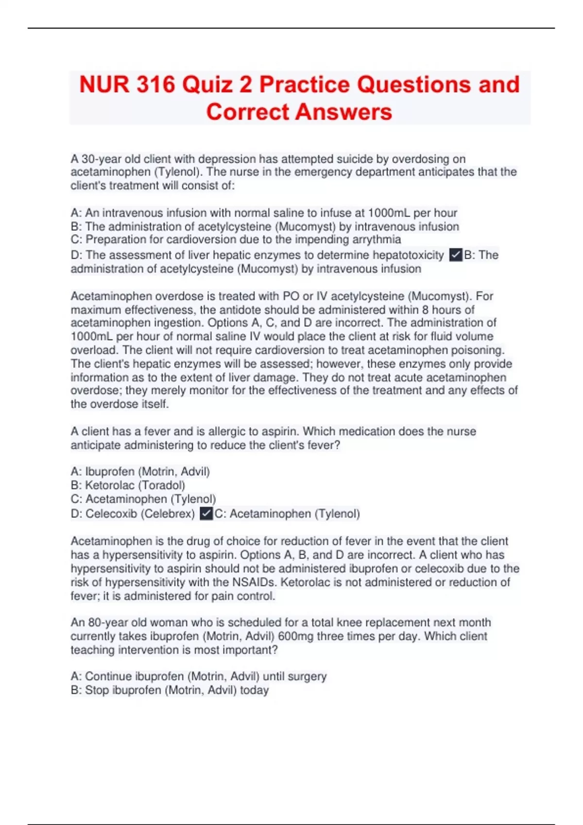 D: Celecoxib (Celebrex) ✅C: Acetaminophen (Tylenol)