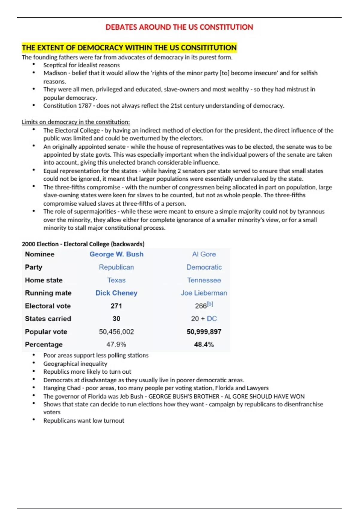 THE EXTENT OF DEMOCRACY WITHIN THE US CONSITITUTION