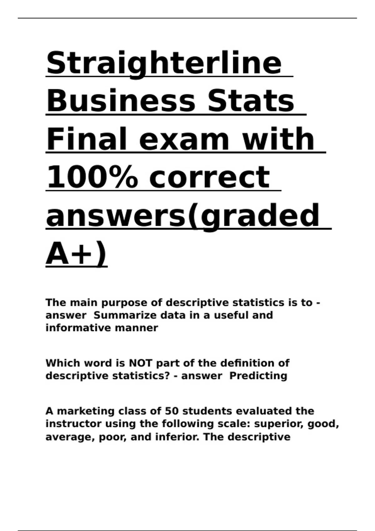 descriptive statistics? - answer Predicting