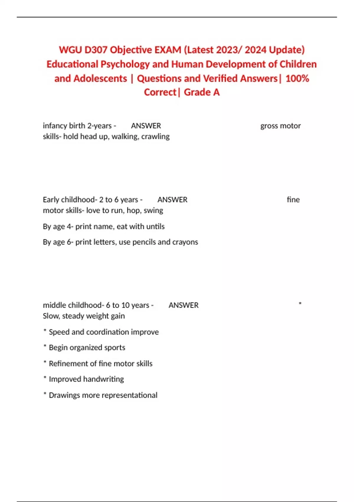 and Adolescents | Questions and Verified Answers| 100%