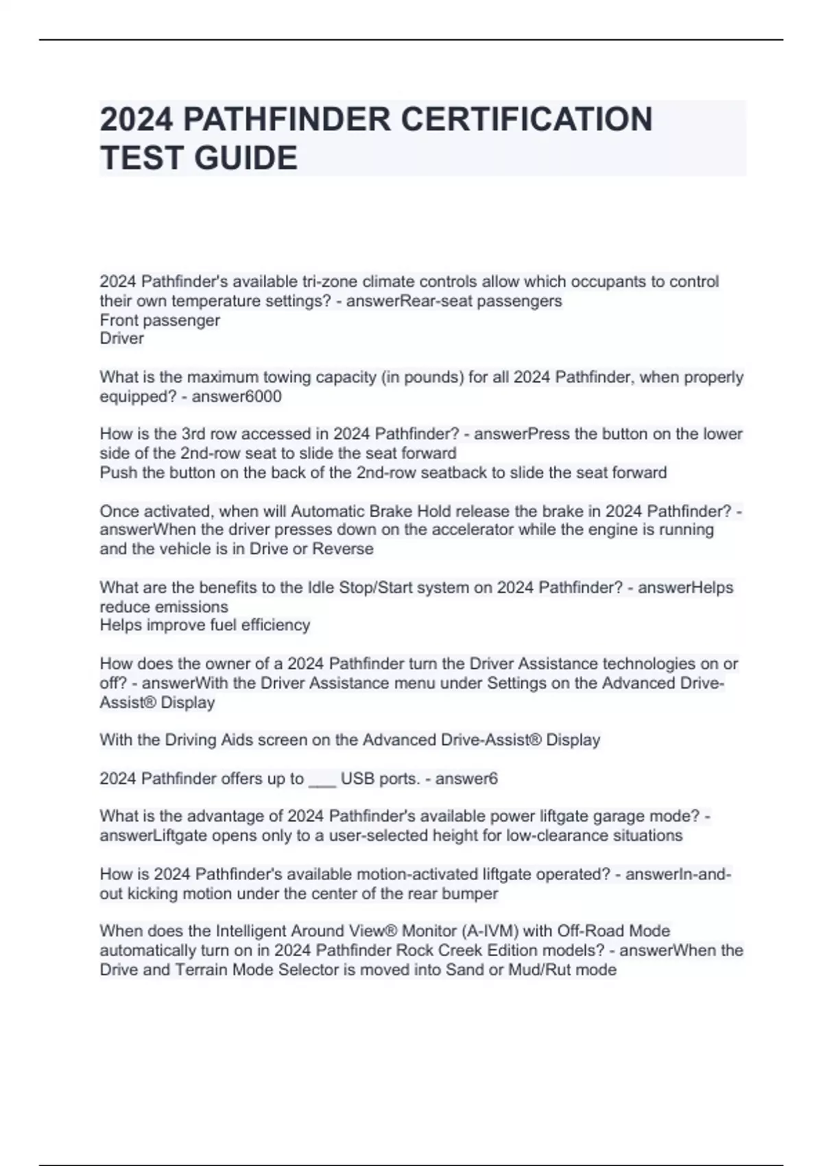 2024 Pathfinder offers up to ___ USB ports. - answer6