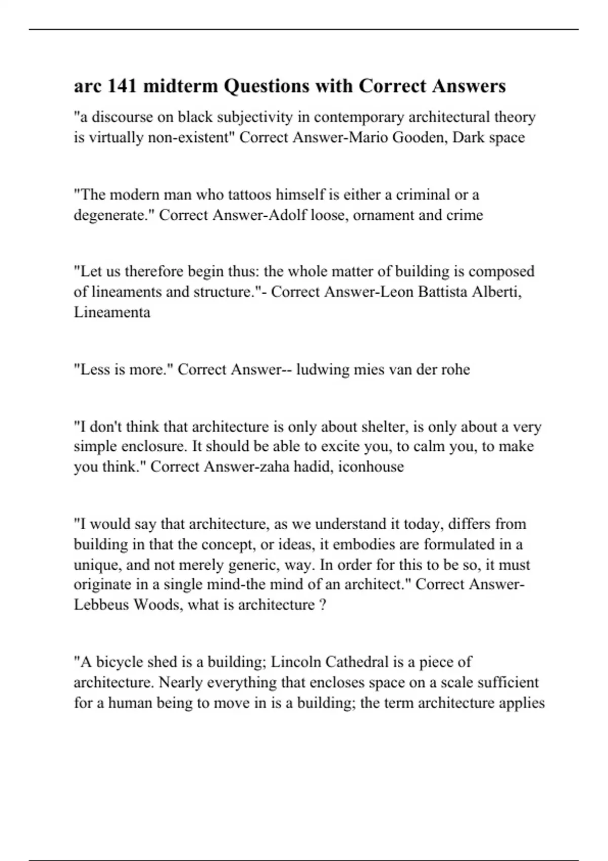 arc 141 midterm Questions with Correct Answers