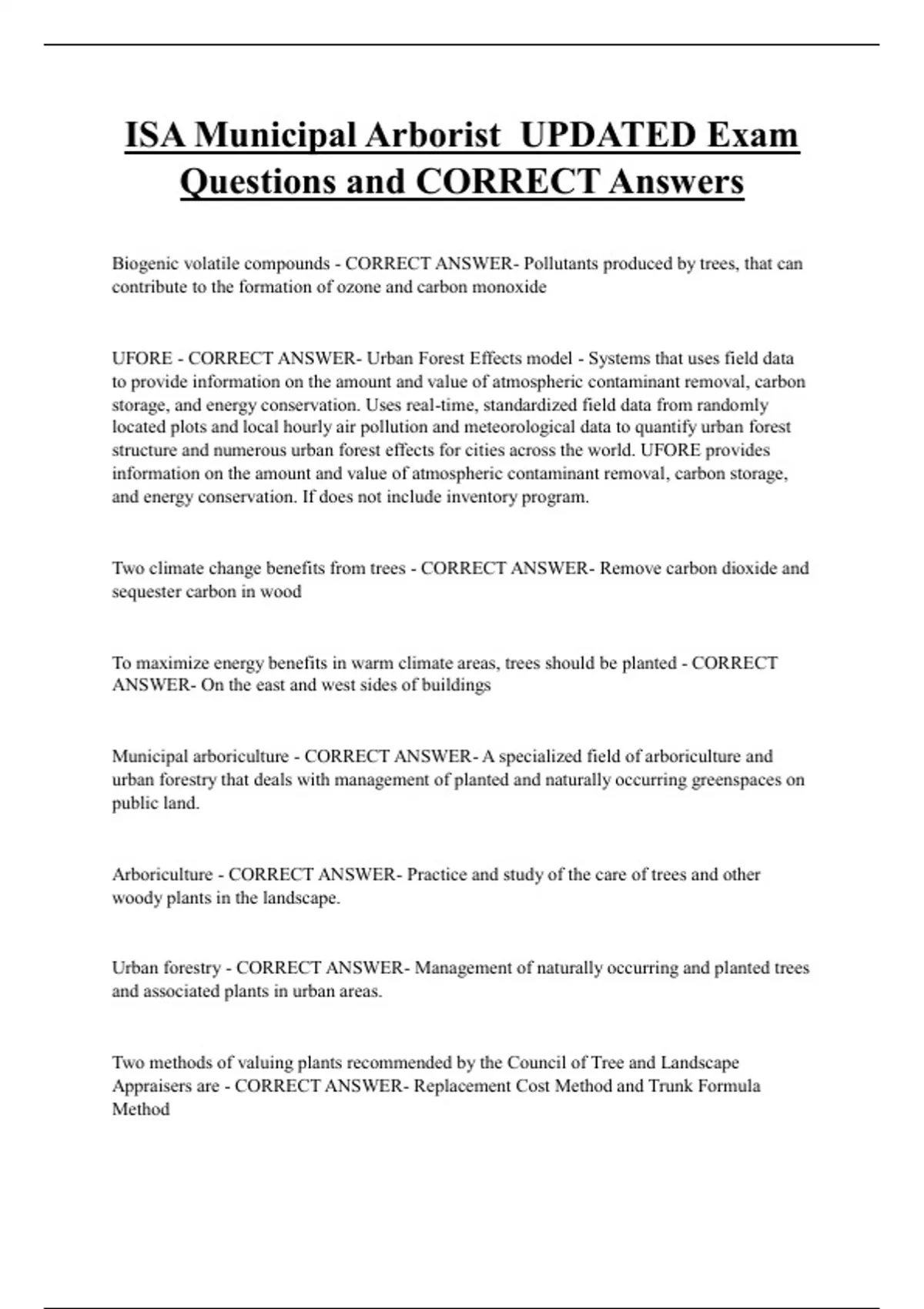 Municipal arboriculture - CORRECT ANSWER- A specialized field of arboriculture and
