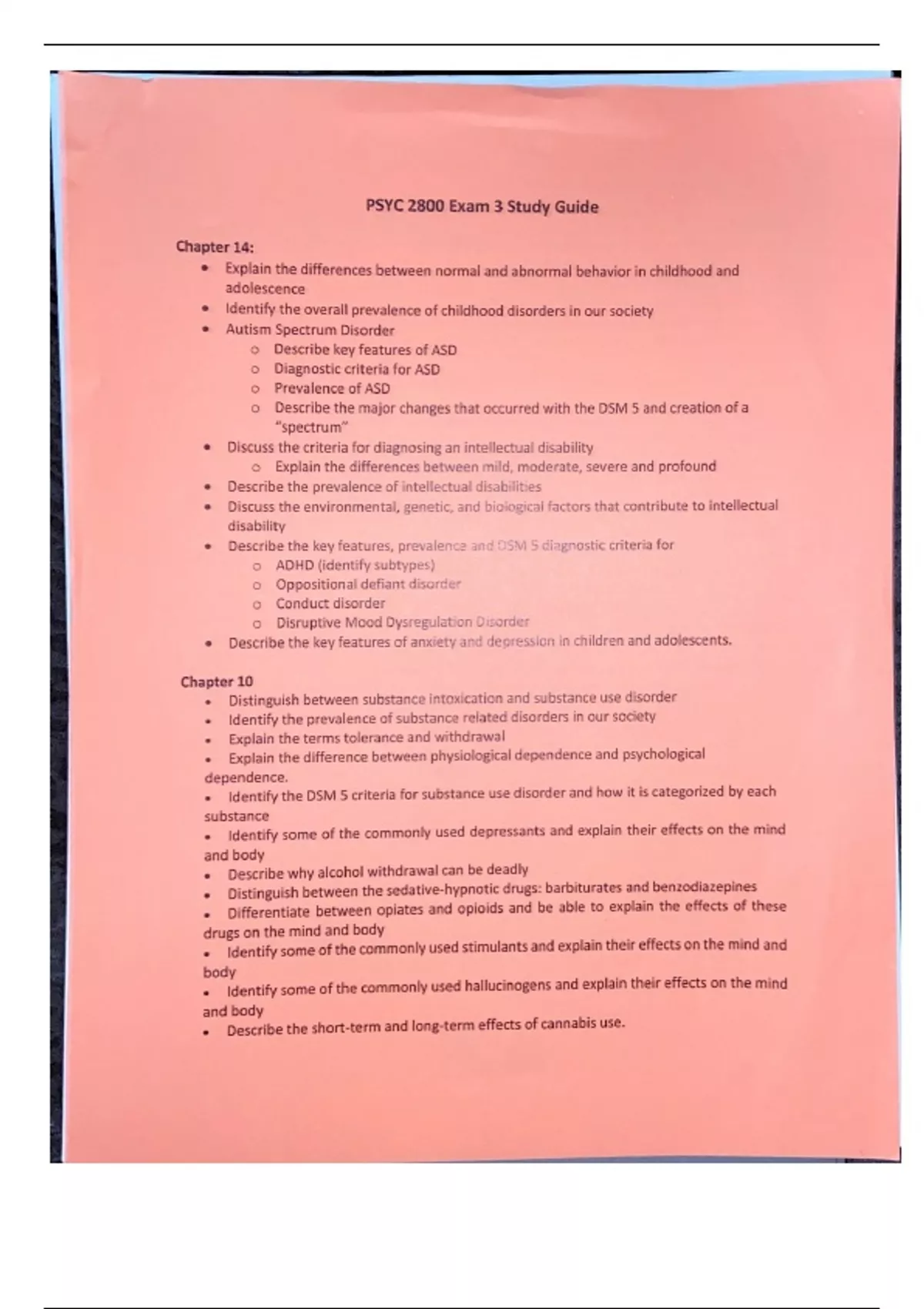 List of topics for psyc 2800 3rd exam