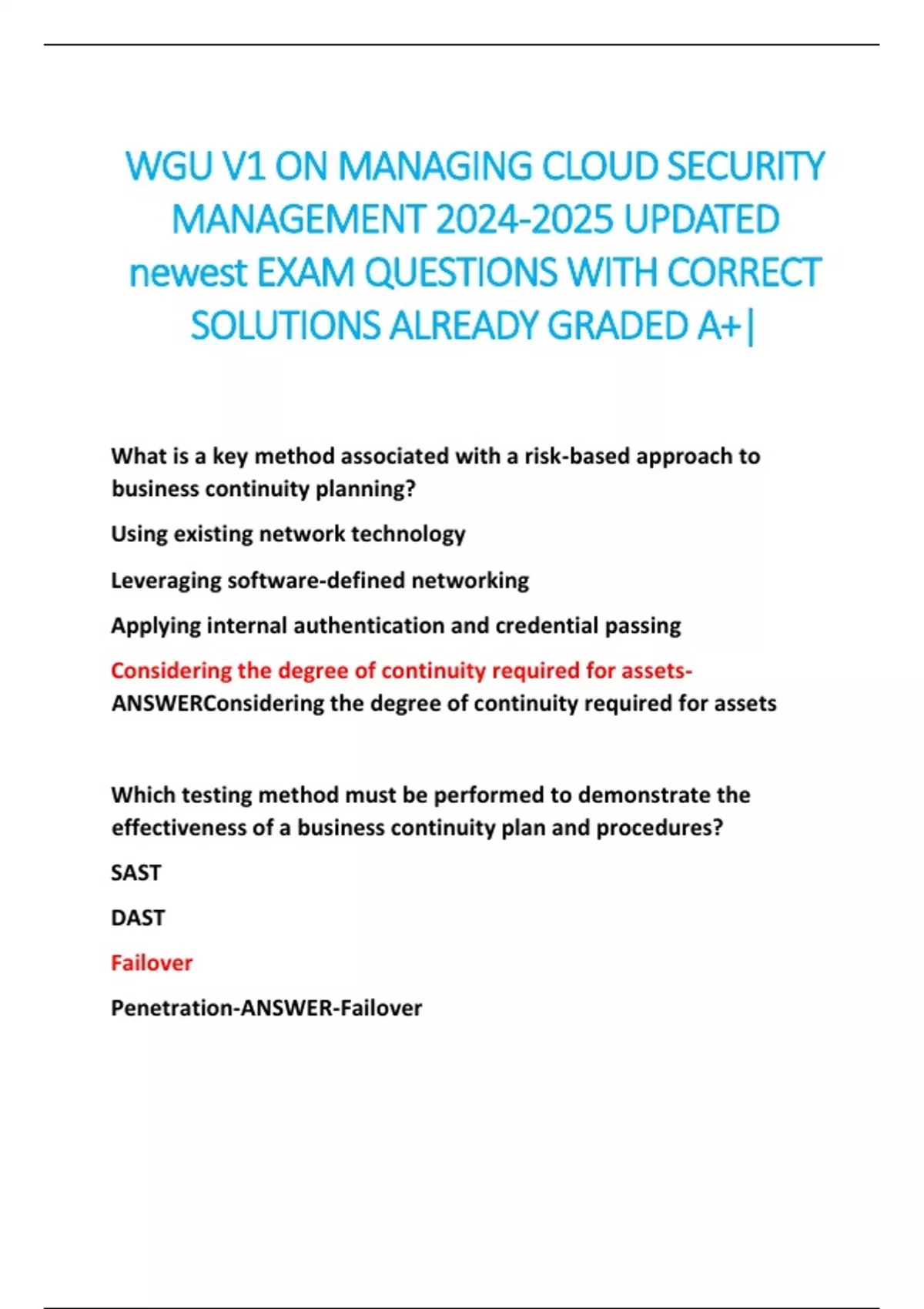 newest EXAM QUESTIONS WITH CORRECT