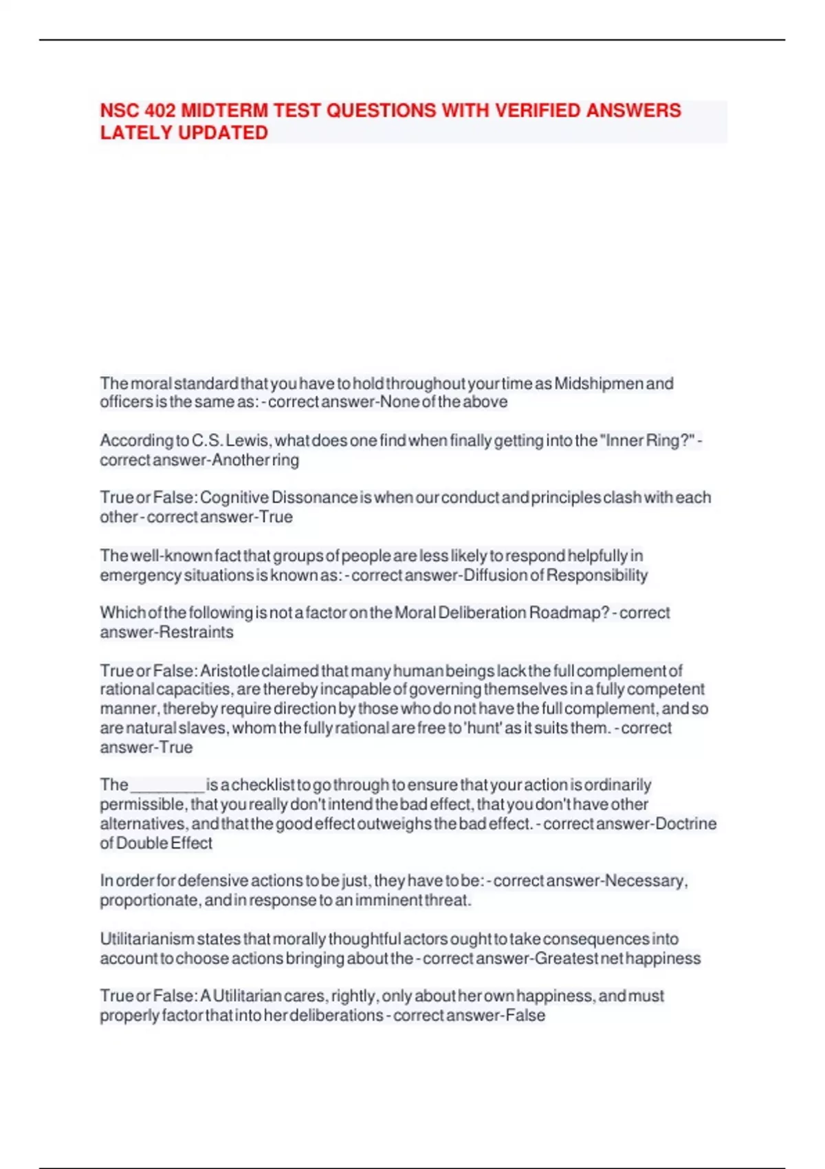 NSC 402 MIDTERM TEST QUESTIONS WITH VERIFIED ANSWERS