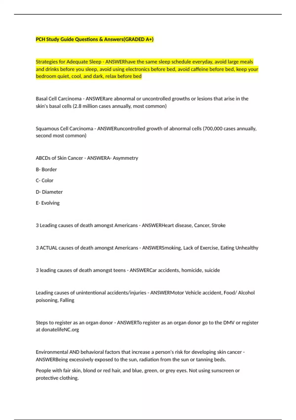 Strategies for Adequate Sleep - ANSWERhave the same sleep schedule everyday, avoid large meals