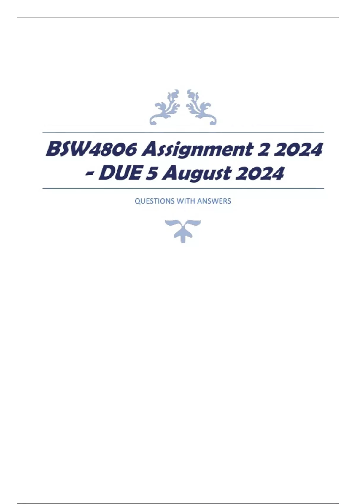 BSW4806 Assignment 2 2024 - DUE 5 August 2024 QUESTIONS WITH DETAILED ANSWERS
