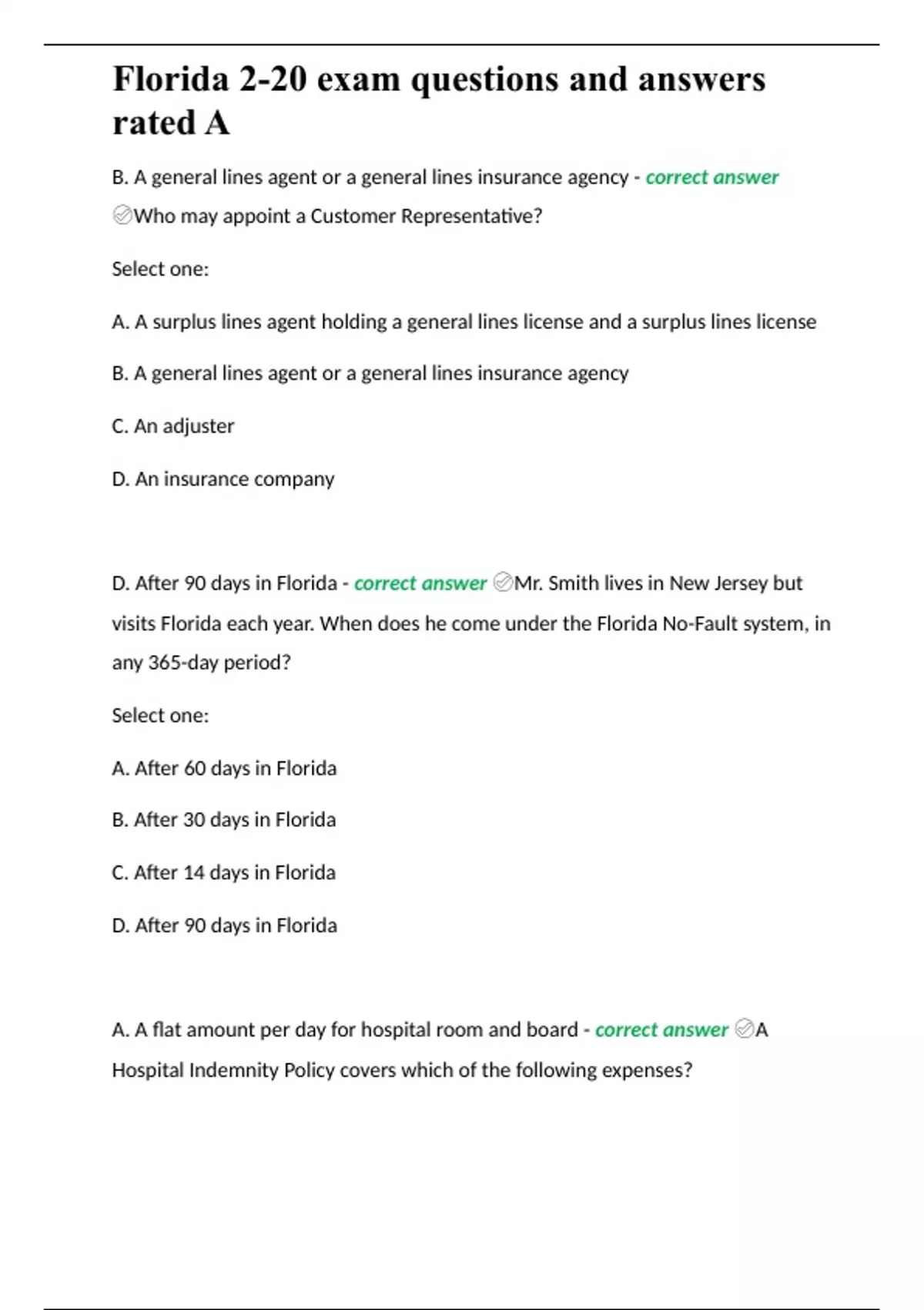 ,Florida 2-20 exam questions and answers