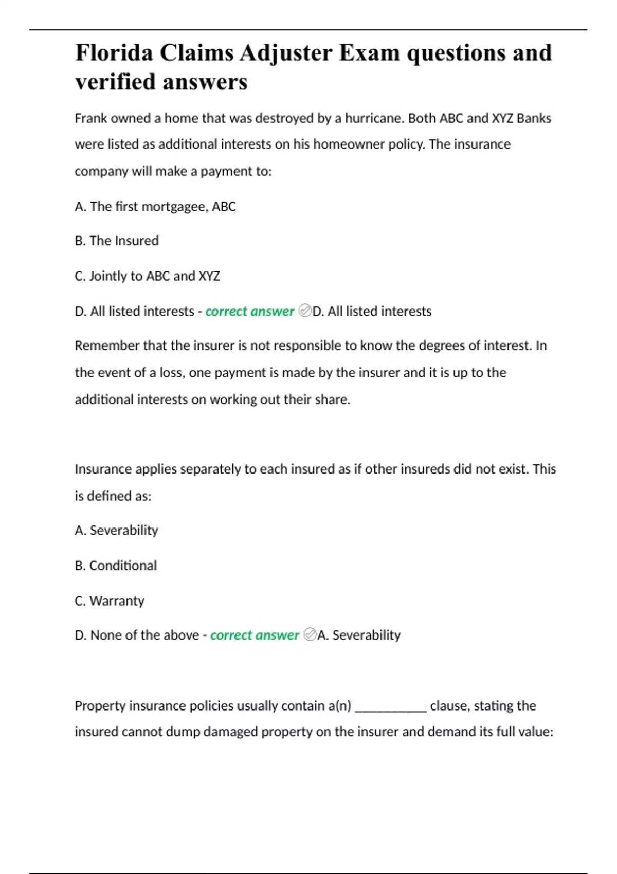 D. Insurable Interest - correct answer ✅D. Insurable Interest