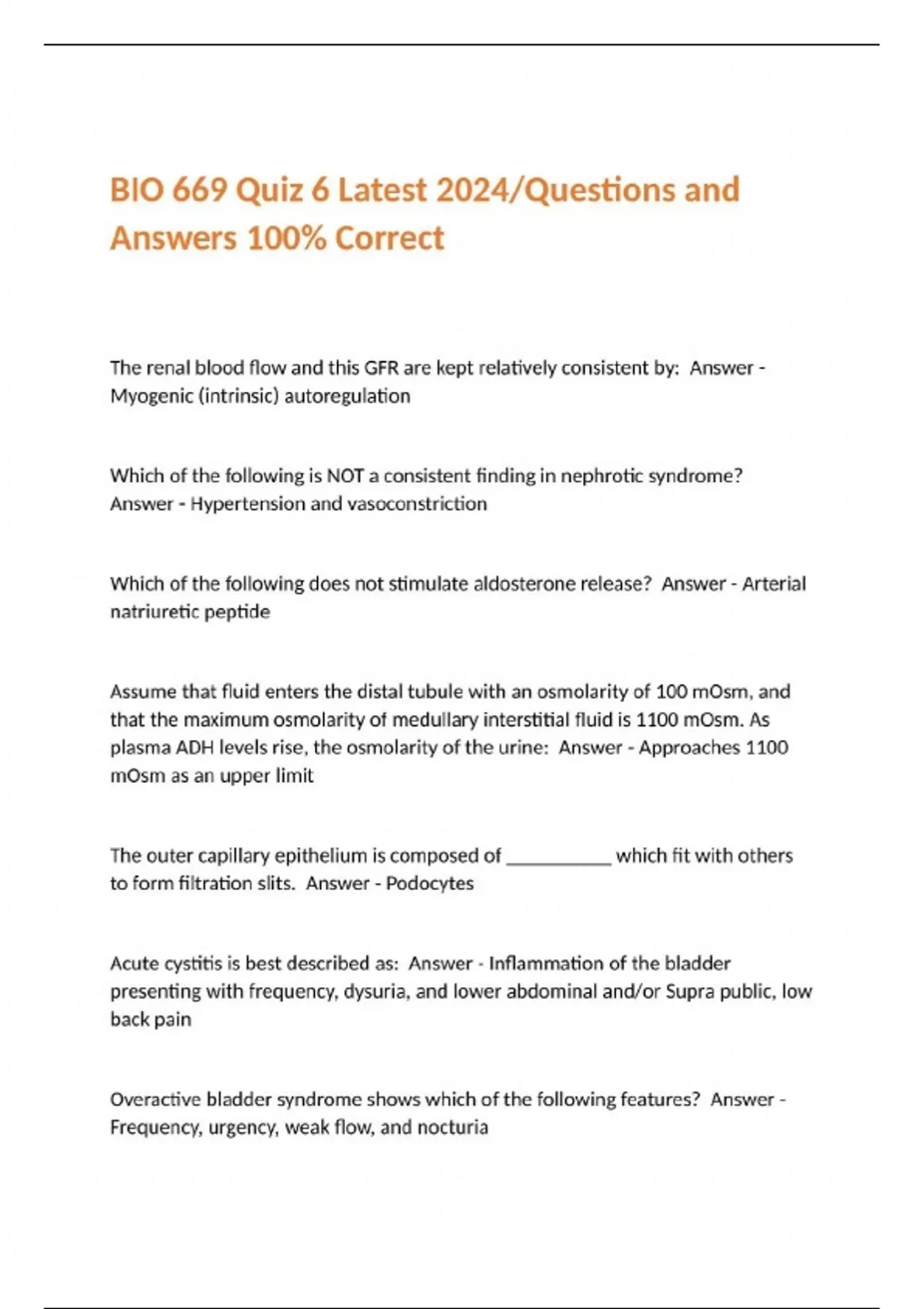 BIO 669 Quiz 6 Latest 2024/Questions and Answers 100% Correct