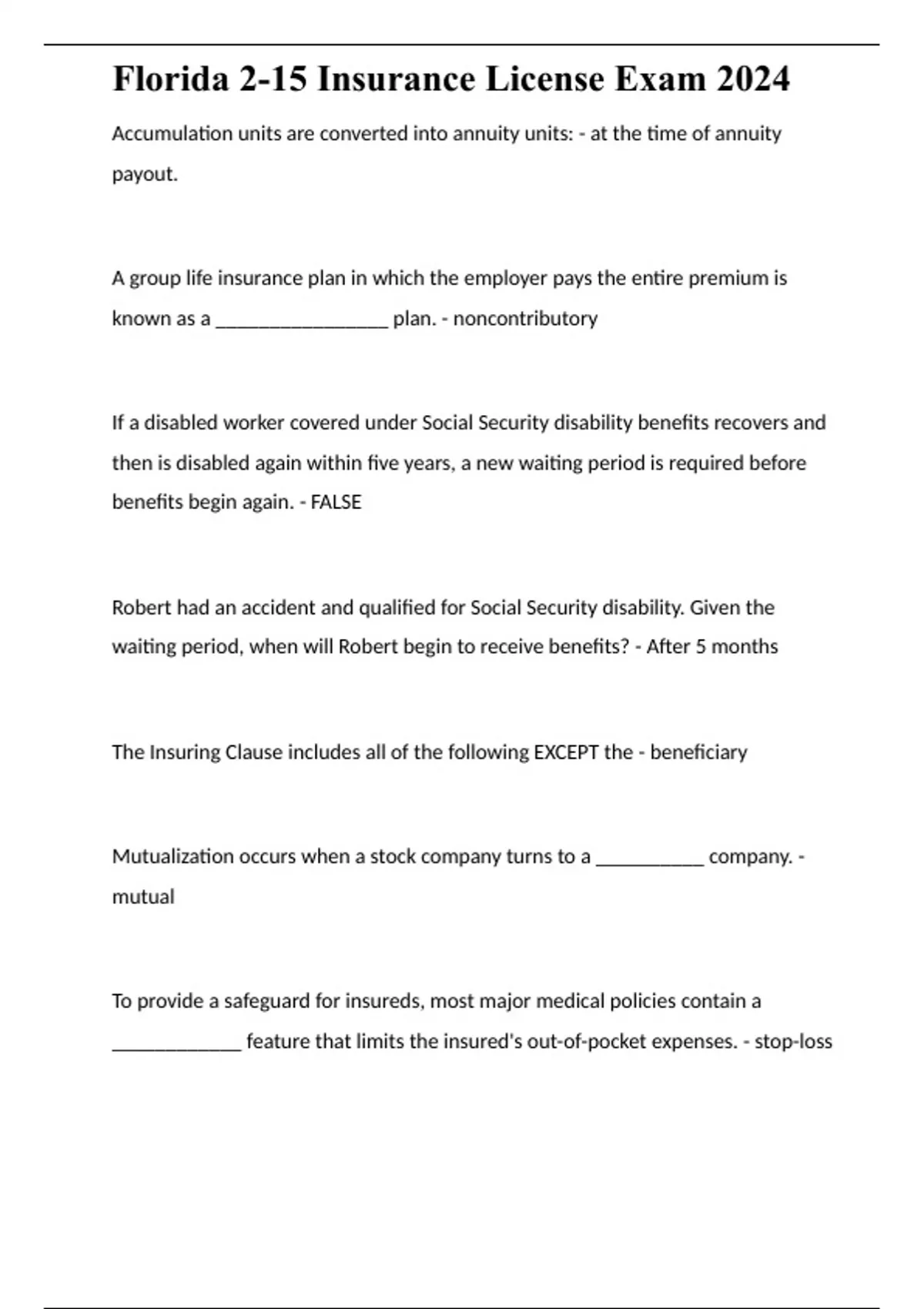 ____________ feature that limits the insured's out-of-pocket expenses. - stop-loss