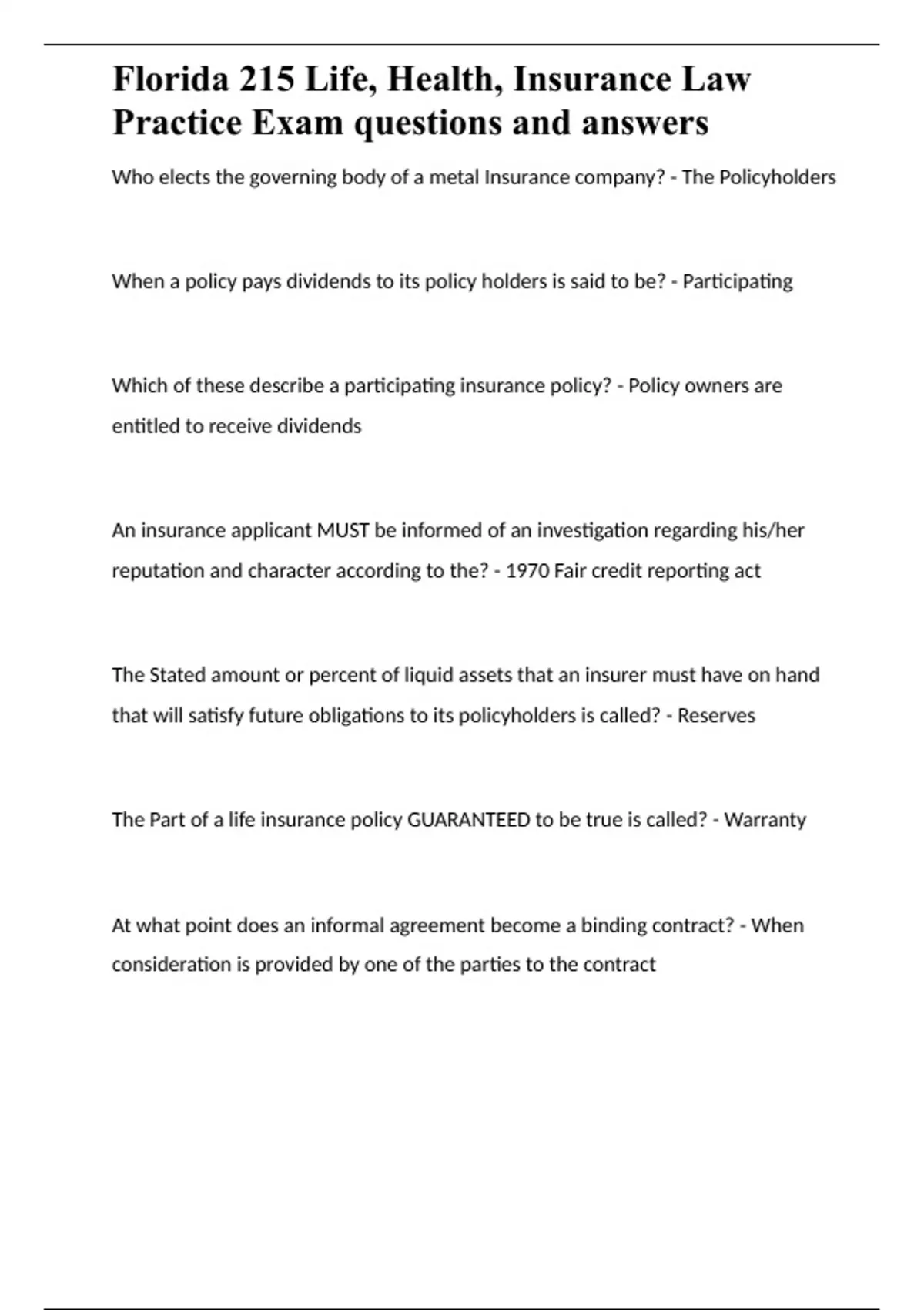 ,Florida 215 Life, Health, Insurance Law