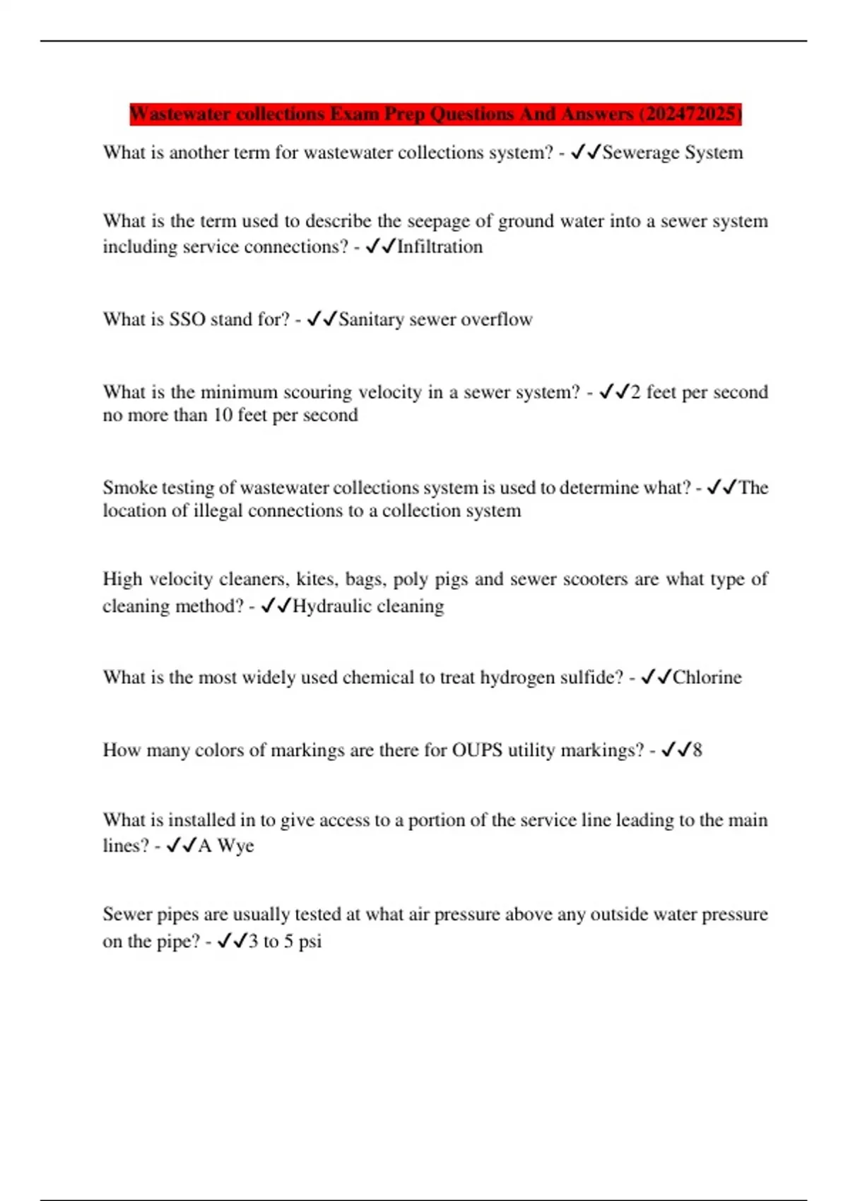Wastewater collections Exam Prep Questions And Answers (202472025)