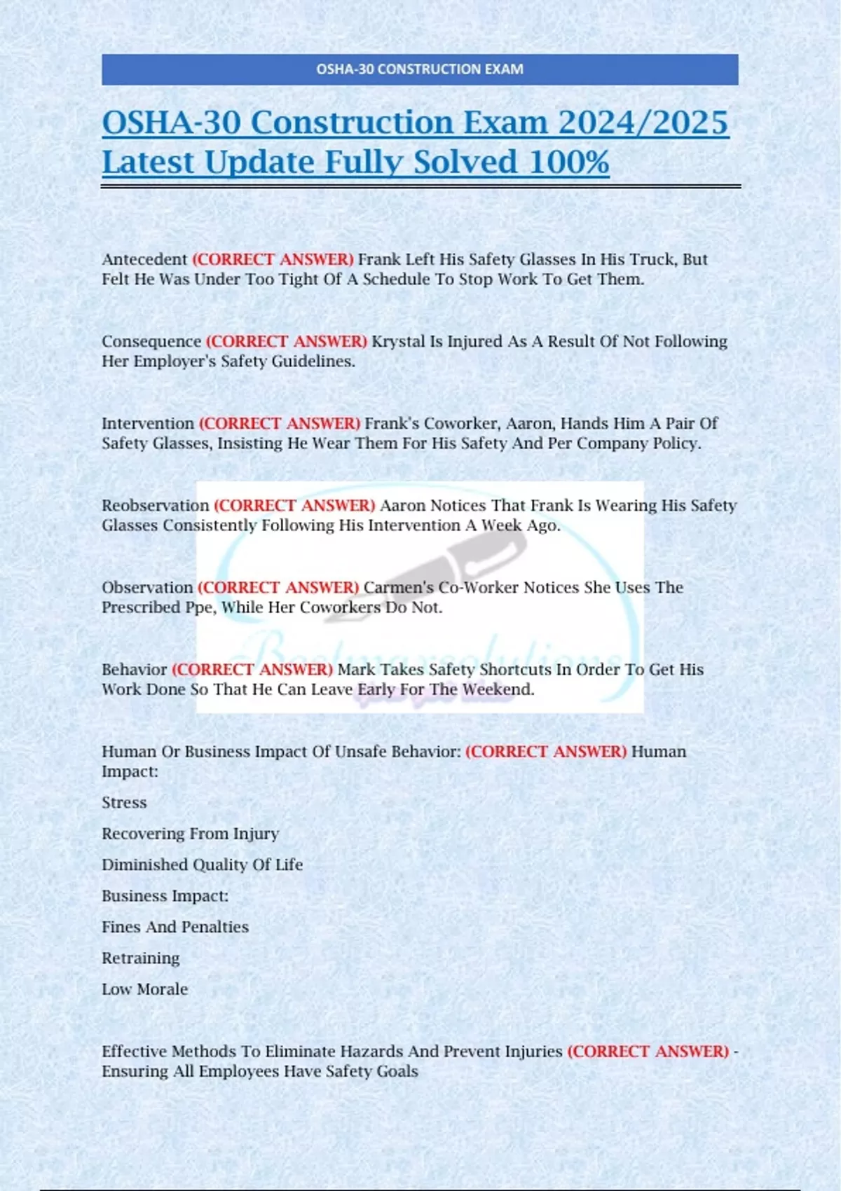 OSHA-30 Construction Exam 2024/2025 Latest Update Fully Solved 100% OSHA-30 Construction Exam 2024/2025 Latest Update Fully Solved 100%