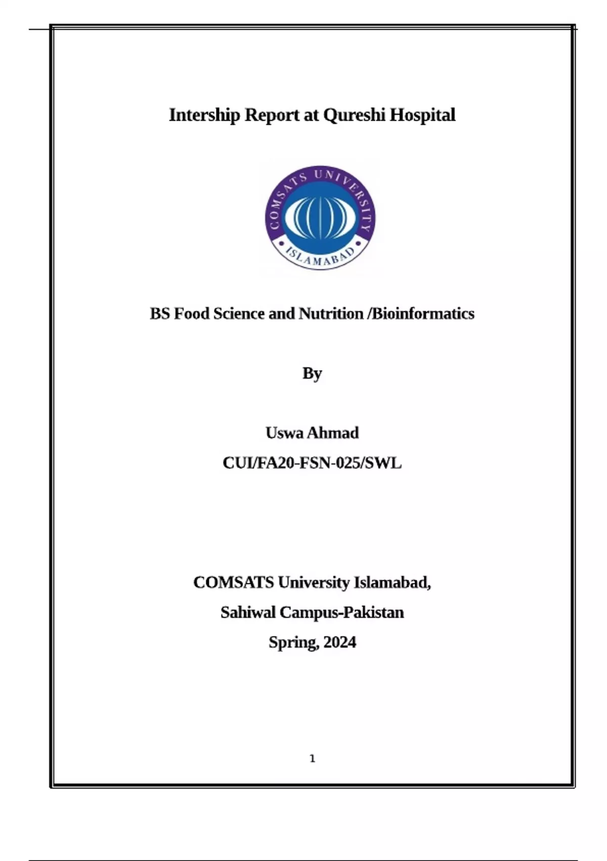 Intership Report at Qureshi Hospital BS Food Science and Nutrition Bioinformatics 2024