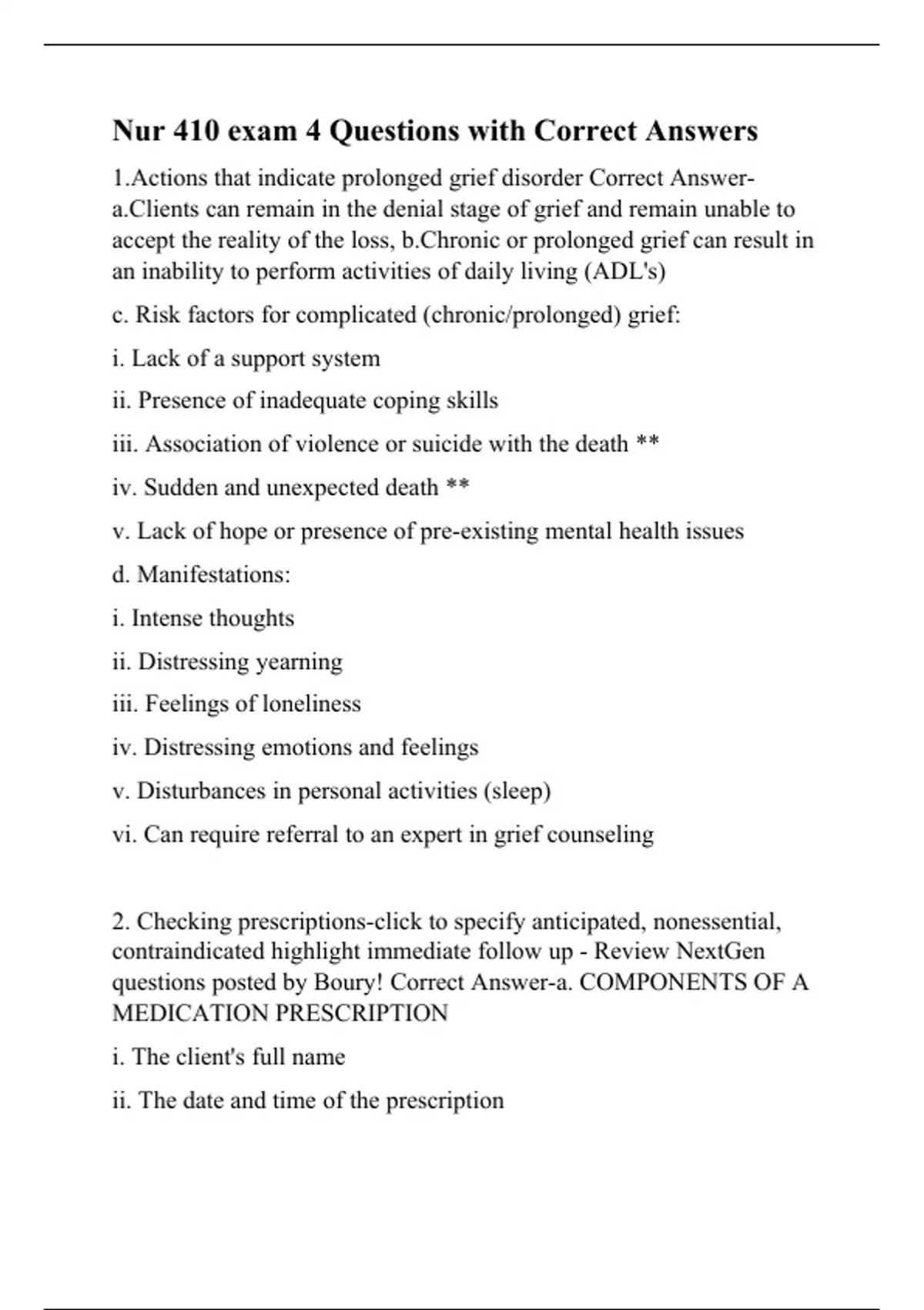 1.Actions that indicate prolonged grief disorder Correct Answer-