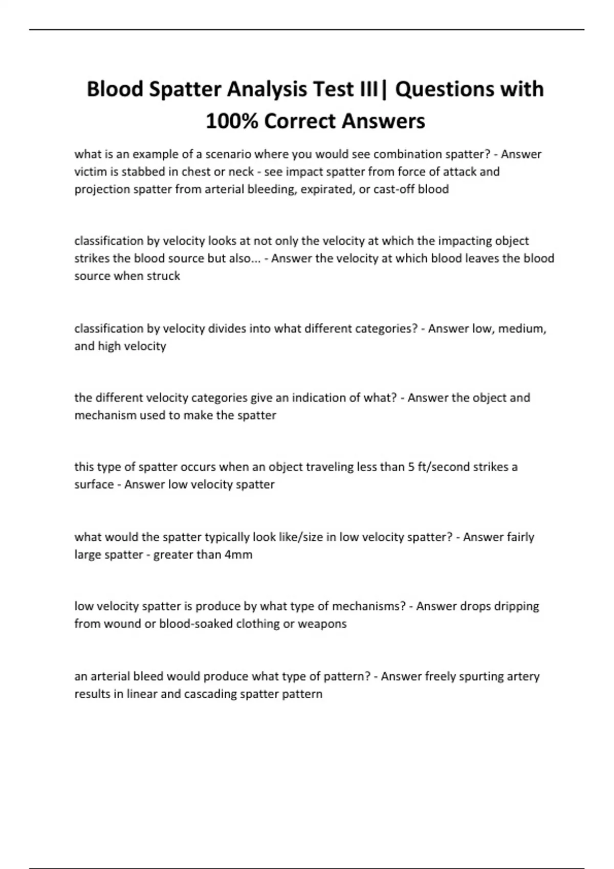 what would the spatter typically look like/size in low velocity spatter? - Answer fairly