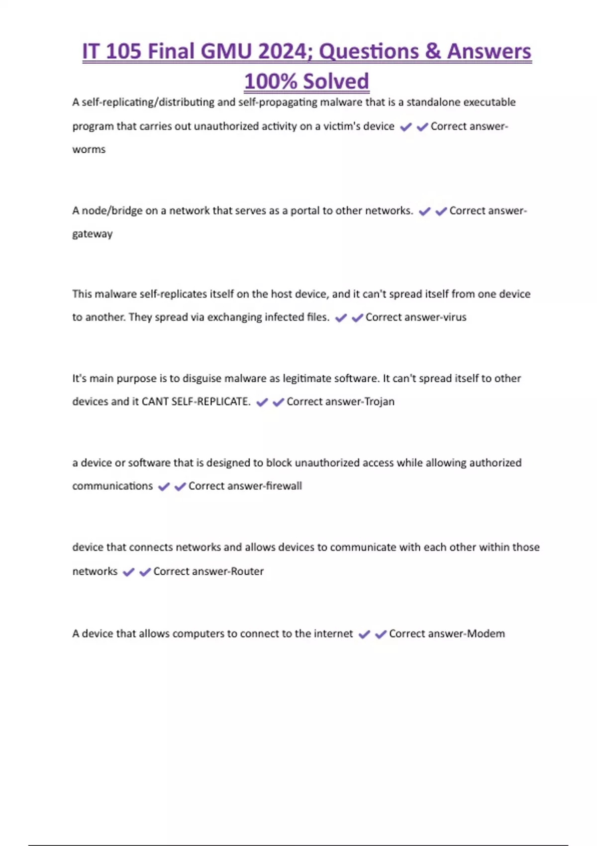 , IT 105 Final GMU 2024; Questions & Answers