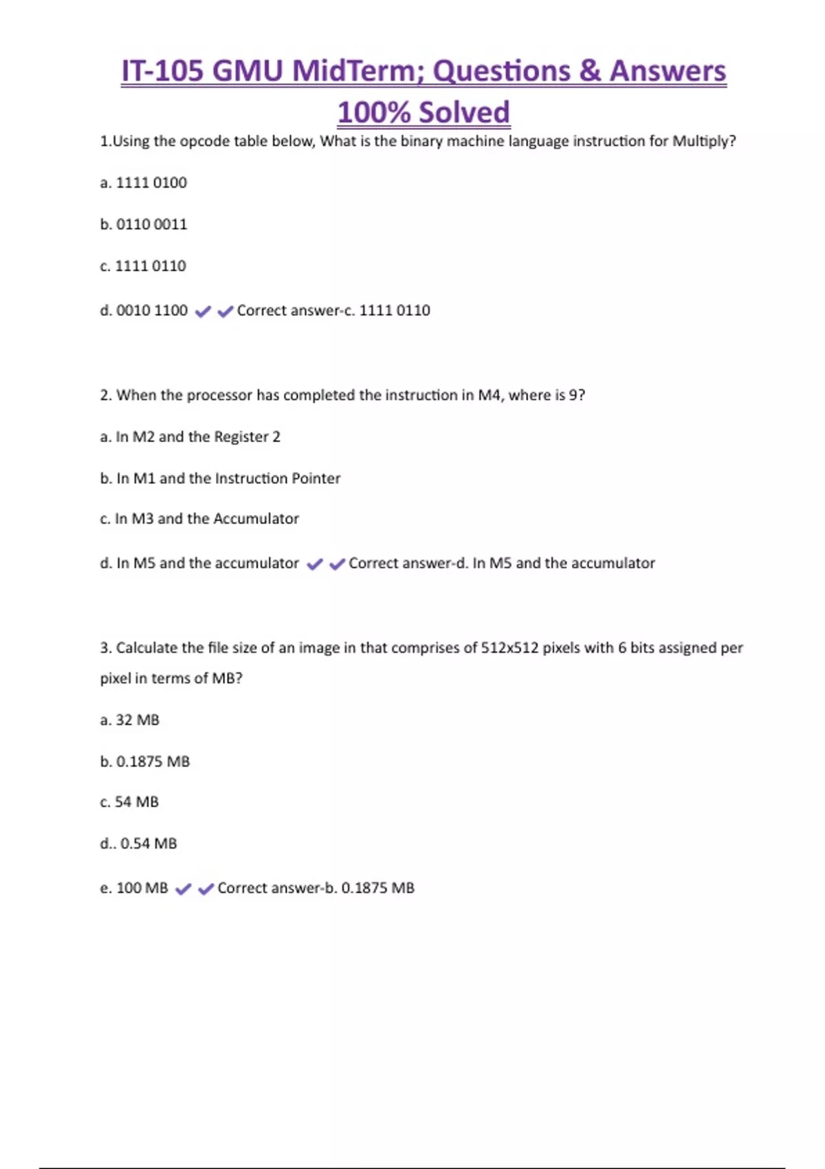 , IT-105 GMU MidTerm; Questions & Answers