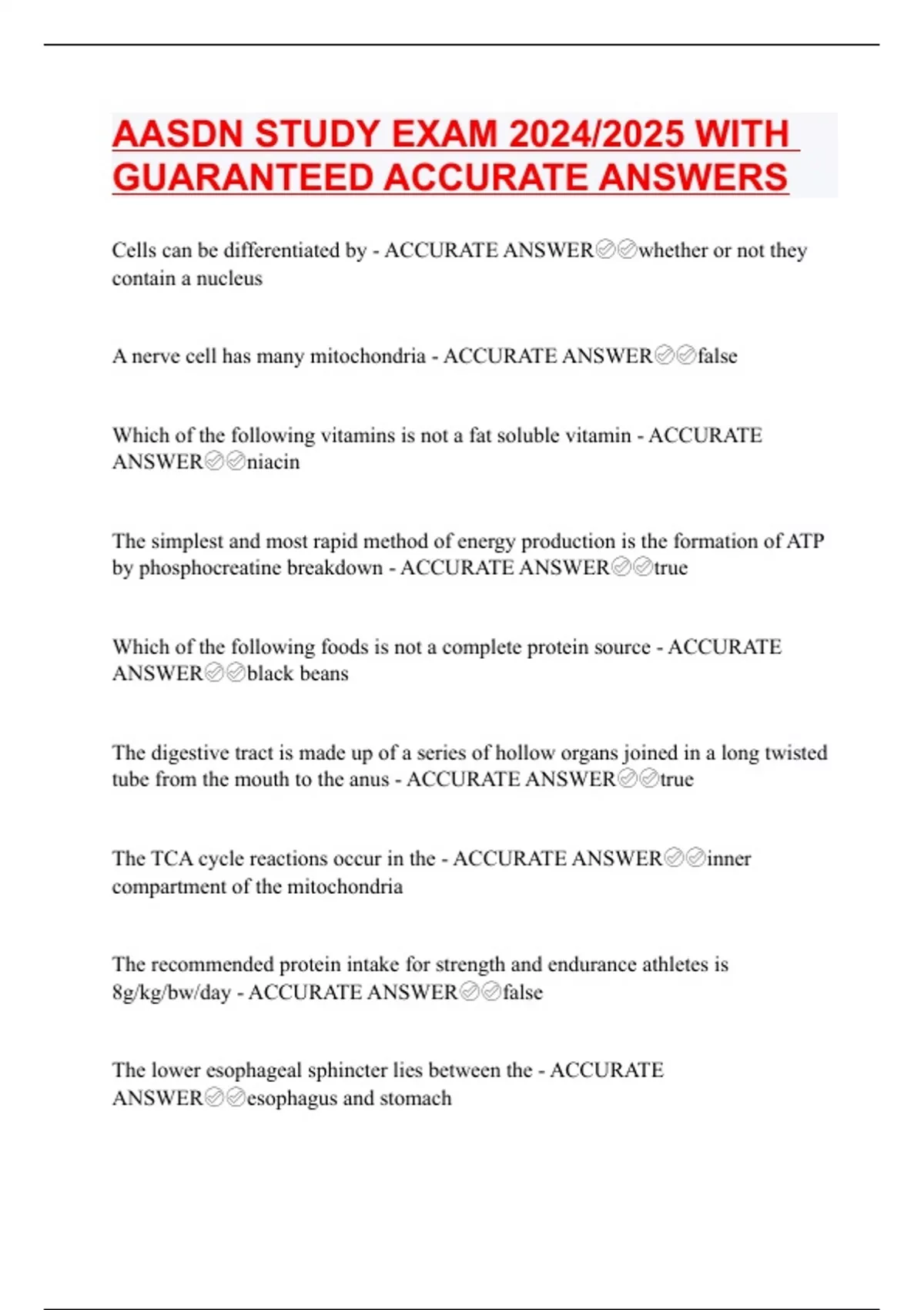 A nerve cell has many mitochondria - ACCURATE ANSWER✅✅false
