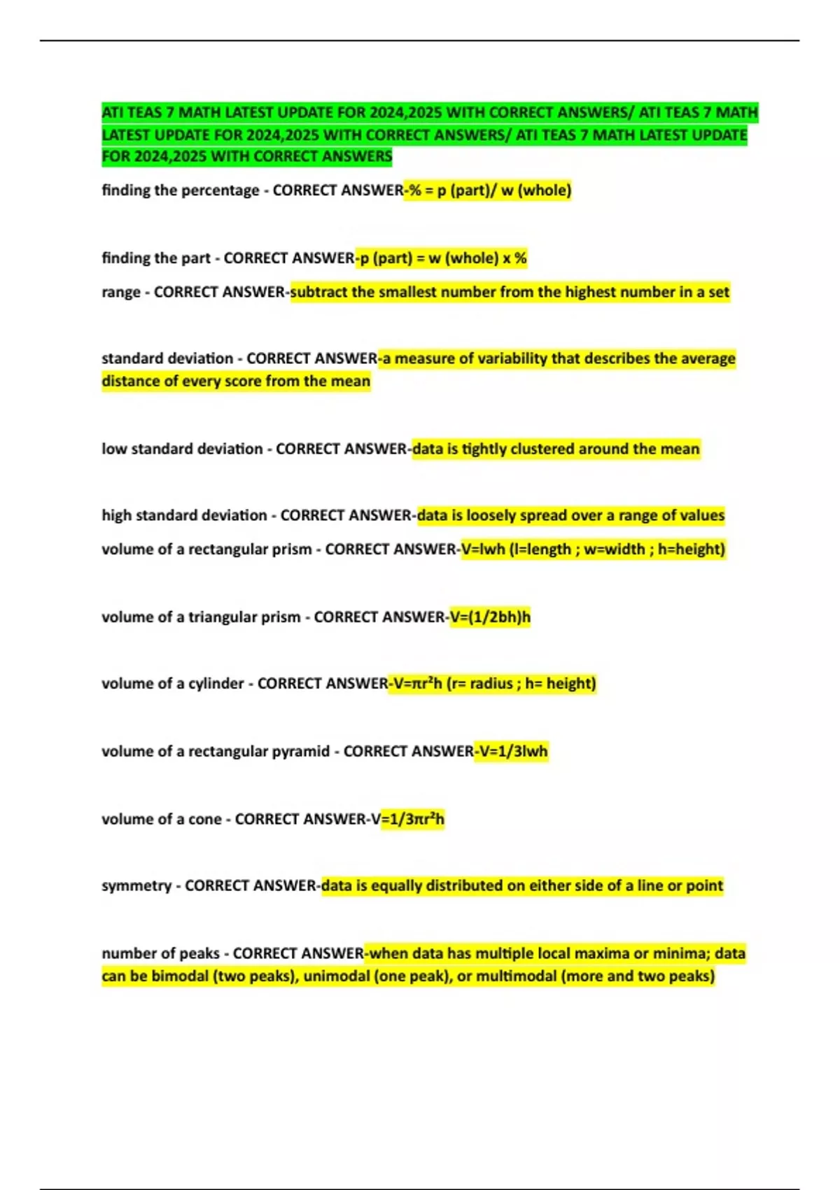 LATEST UPDATE FOR 2024,2025 WITH CORRECT ANSWERS/ ATI TEAS 7 MATH LATEST UPDATE