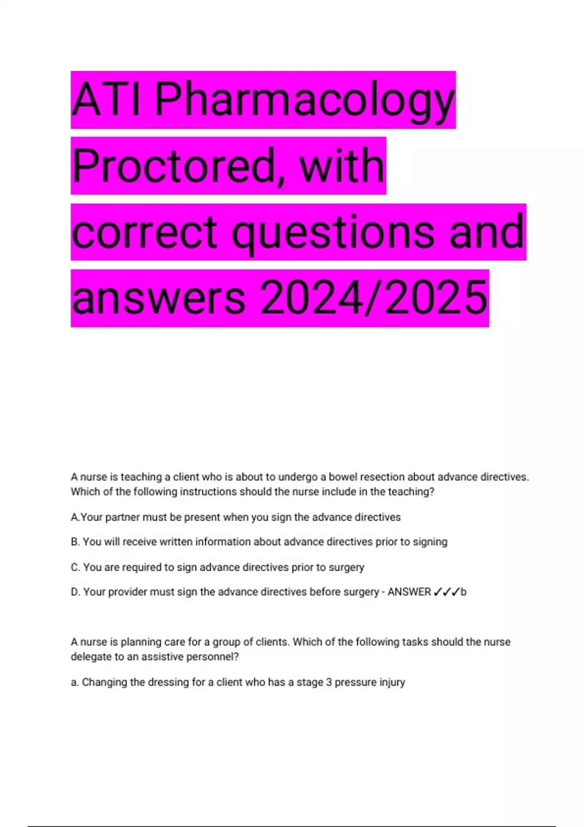 D. Your provider must sign the advance directives before surgery - ANSWER ✓✓✓b