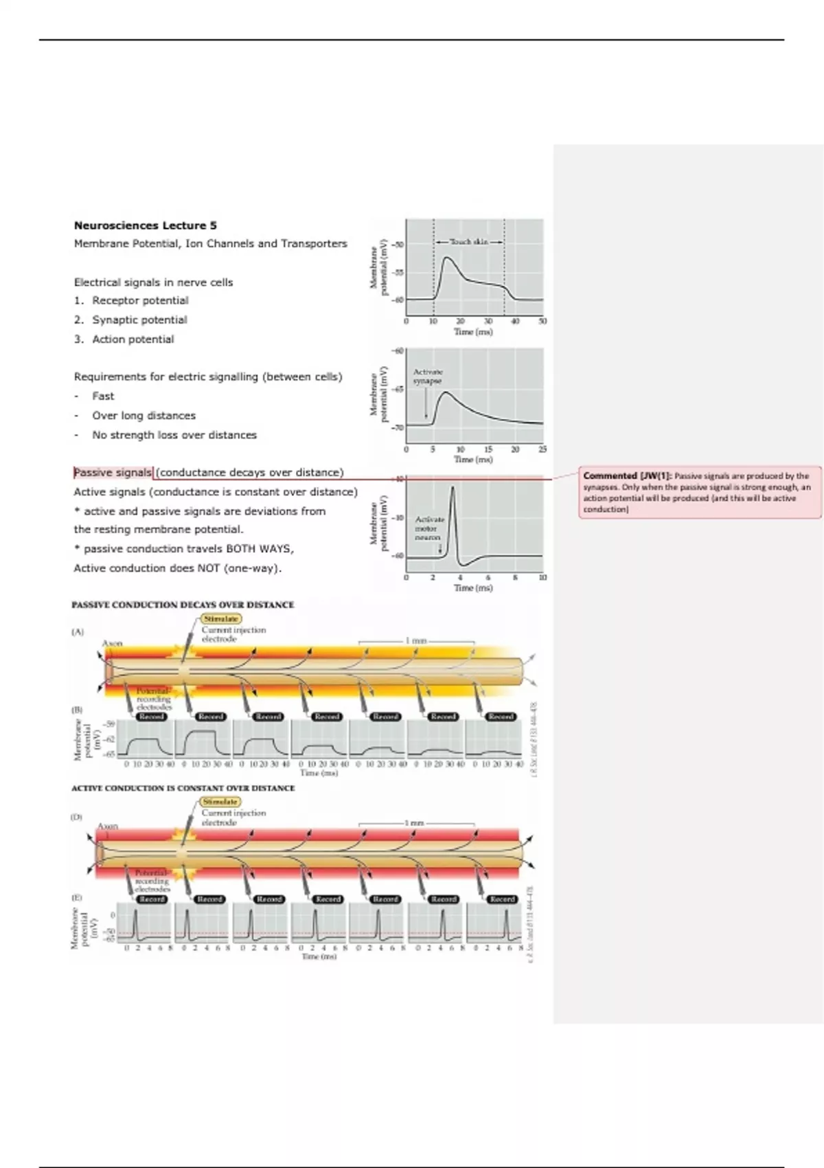 Passive signals (conductance decays over distance) Commented [JW(1]: Passive signals are produced by the
