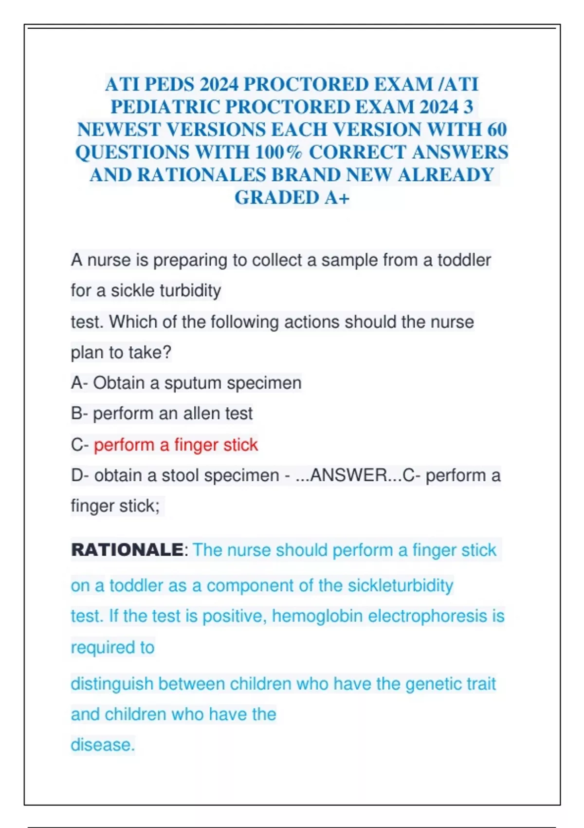 PEDIATRIC PROCTORED EXAM 2024 3