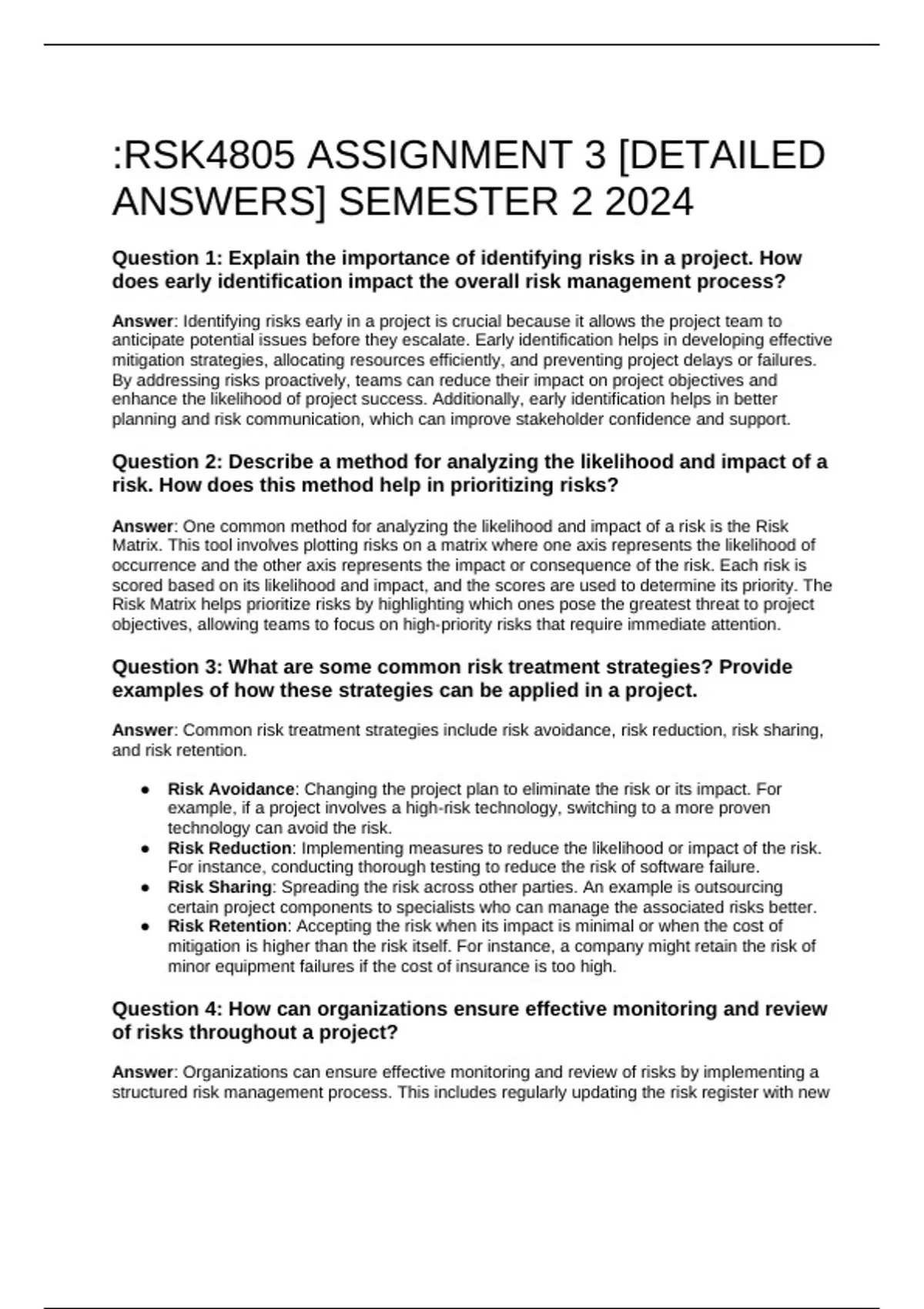 RSK4805 ASSIGNMENT 3 [DETAILED ANSWERS] SEMESTER 2 2024