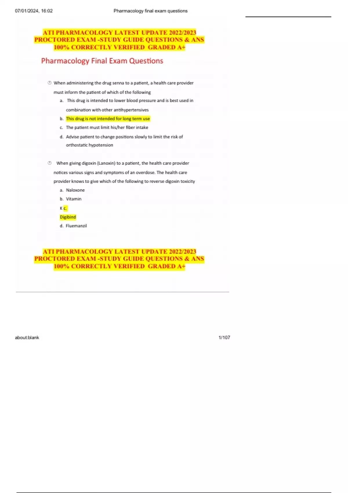 , 07/01/2024, 16:02 Pharmacology final exam questions