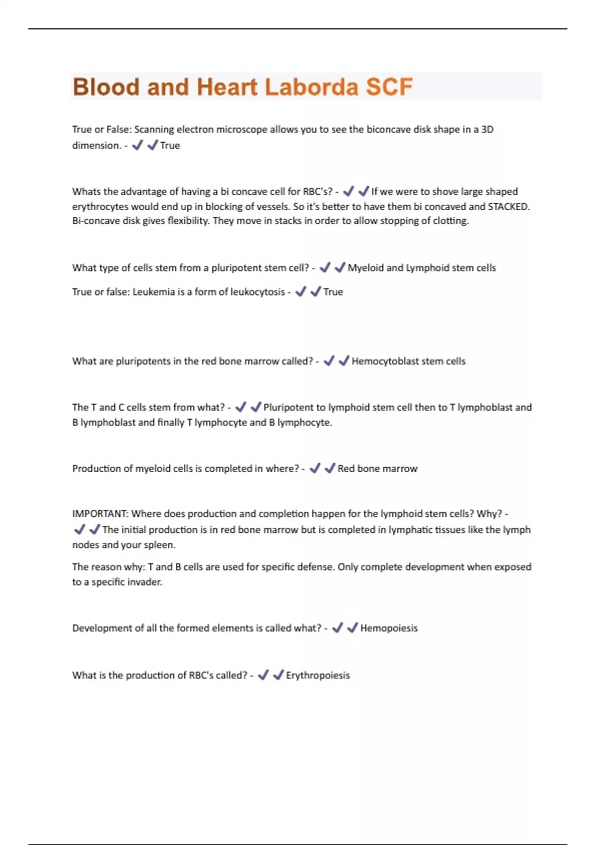 Blood and Heart Laborda SCF Questions and Answers 100% Verified